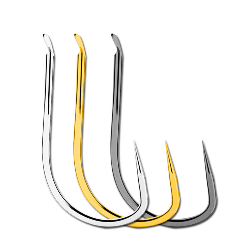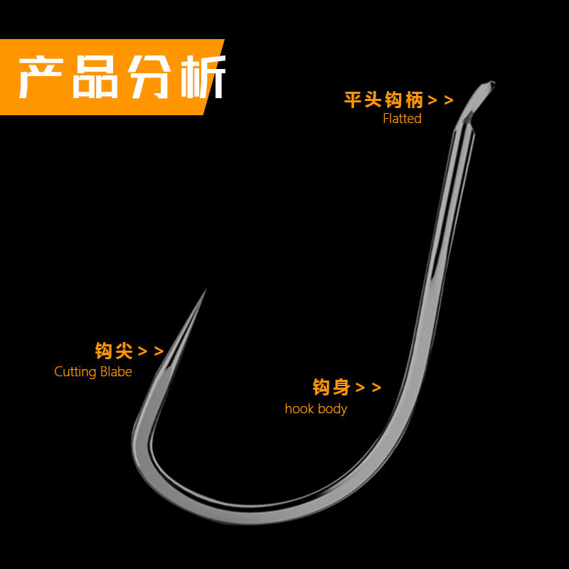 袖:此钩型无倒刺。钩尖锋利,钩柄长,钩条细钩身轻,适用于吸入取食的小型鱼种,快钓快取,多用于钓白鲫、小白条等。