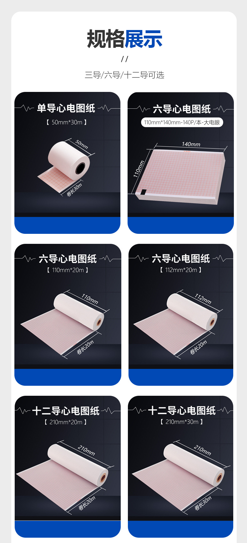 Бумага для ЭКГ Libang 1201 Japan Optoelectronics, 12 отведений, 210x140-20м, 1350P, Komen H12, Bangjian 1210