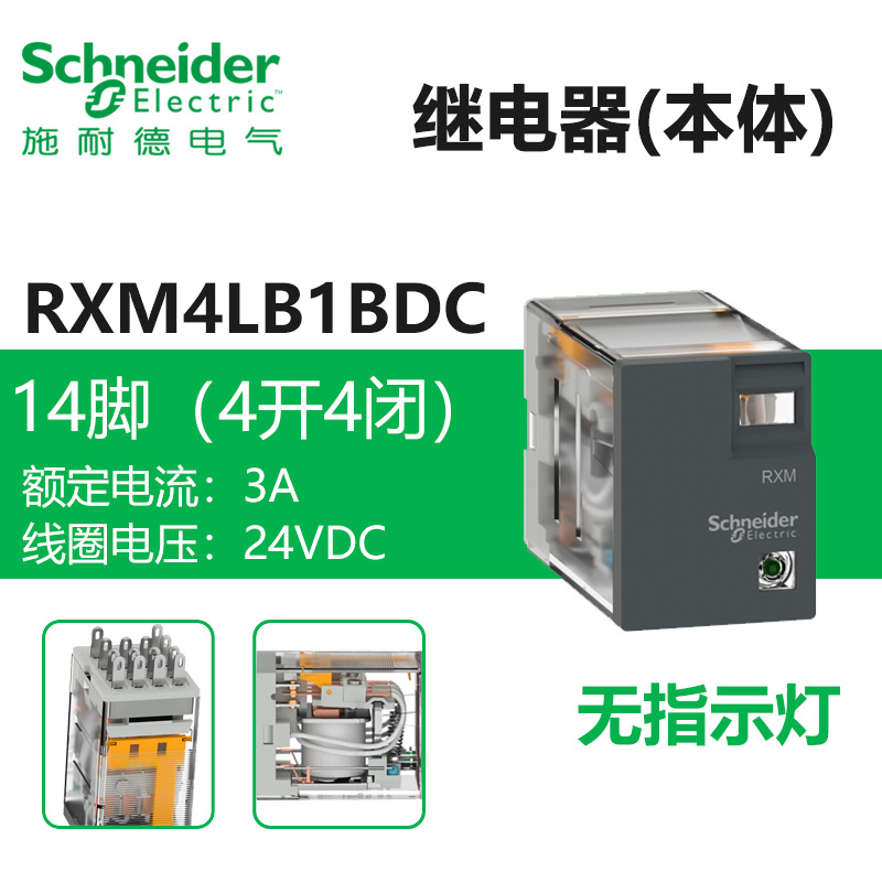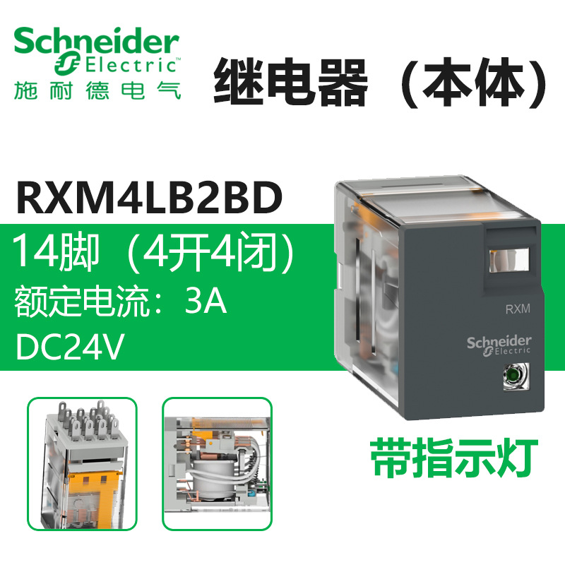 Реле Schneider RXM4LB2BD, 14 контактов, 3А, четыре нормально открытых, четыре нормально закрытых, промежуточное реле DC24V/220V
