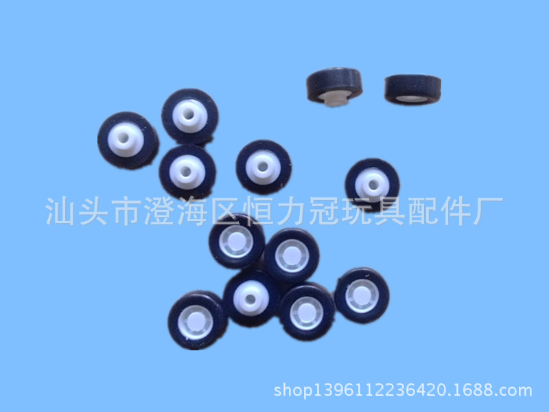 供应玩具车轮胎,TPR(TPE)材料环保!现有规格8、10、11、12、13、14、15、16mm,中心孔有1.2,1.5,2.0mm 欢迎选购!规格不同,价格不同,请咨询!