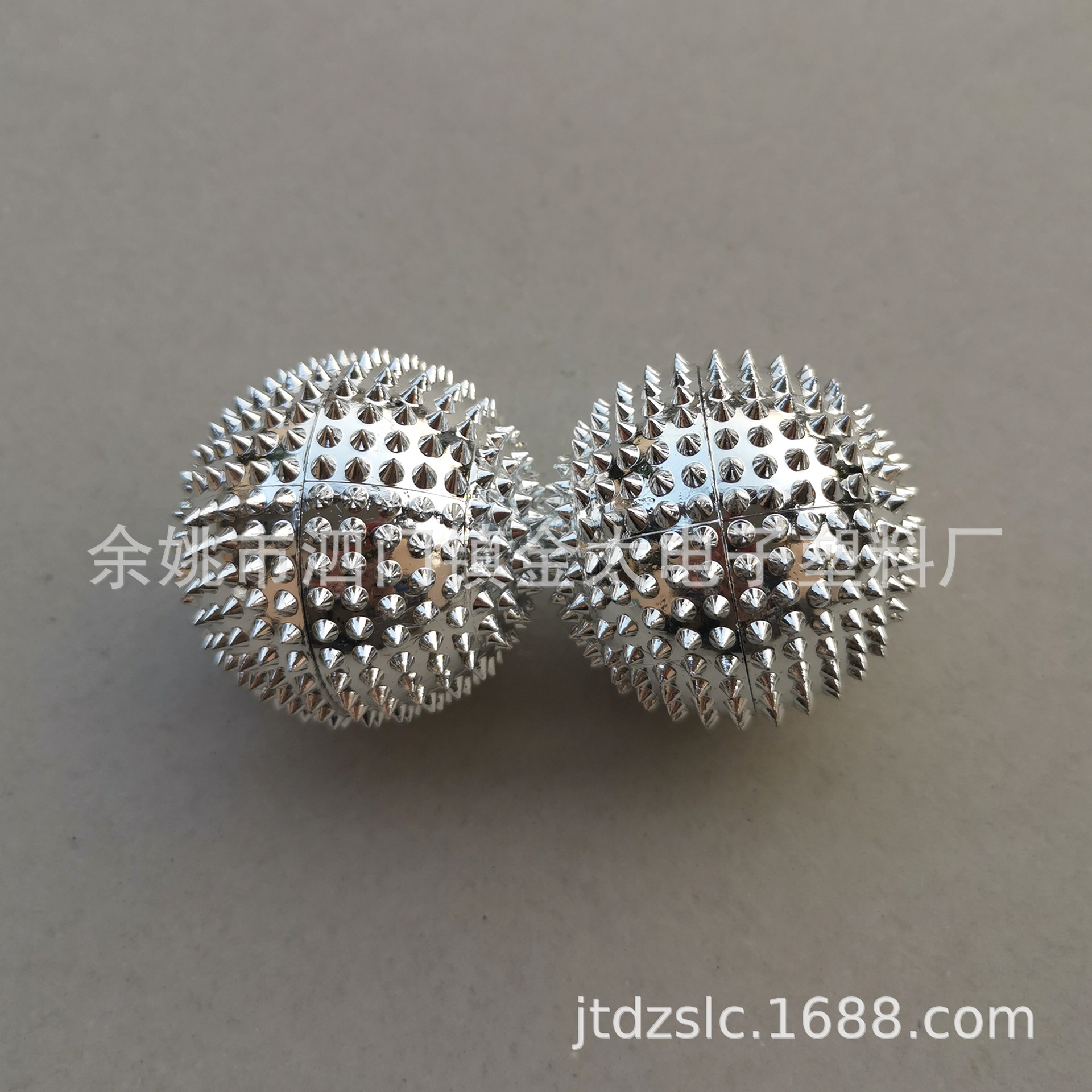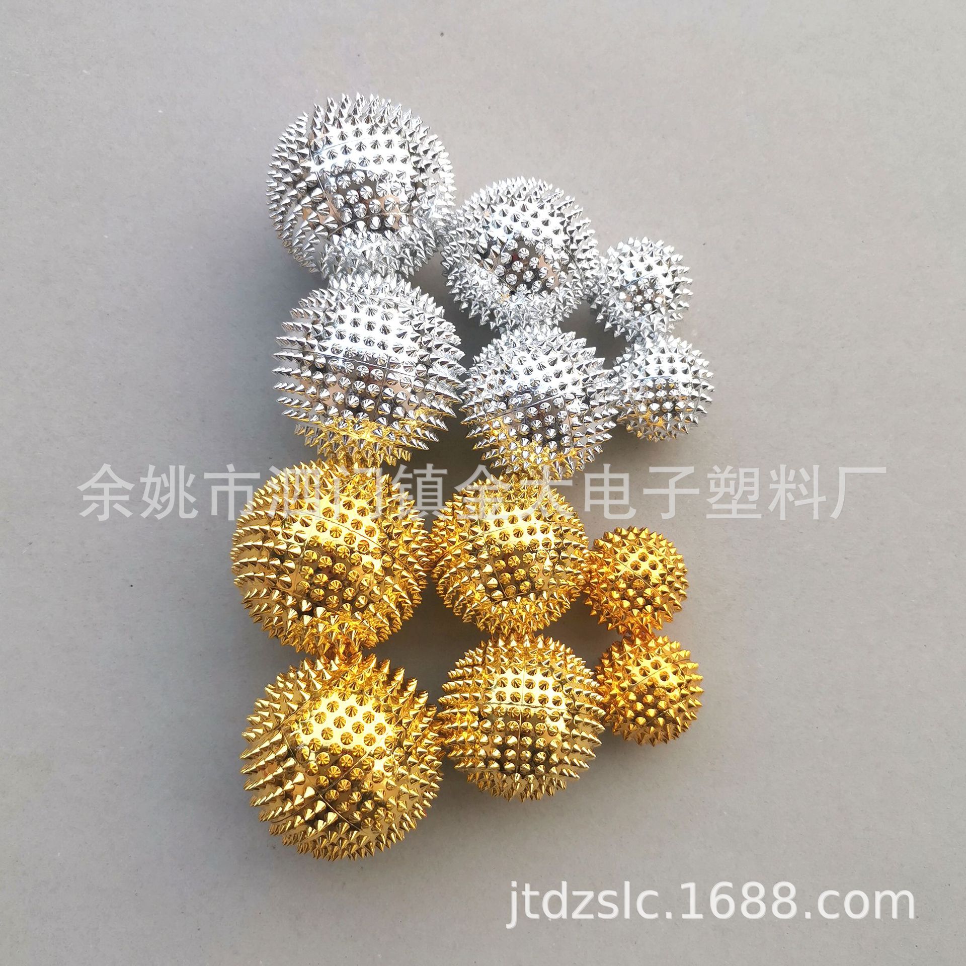 金银两色金属感按摩球,内含4片磁铁,表面的刺以及磁铁的磁性来舒展筋脉
