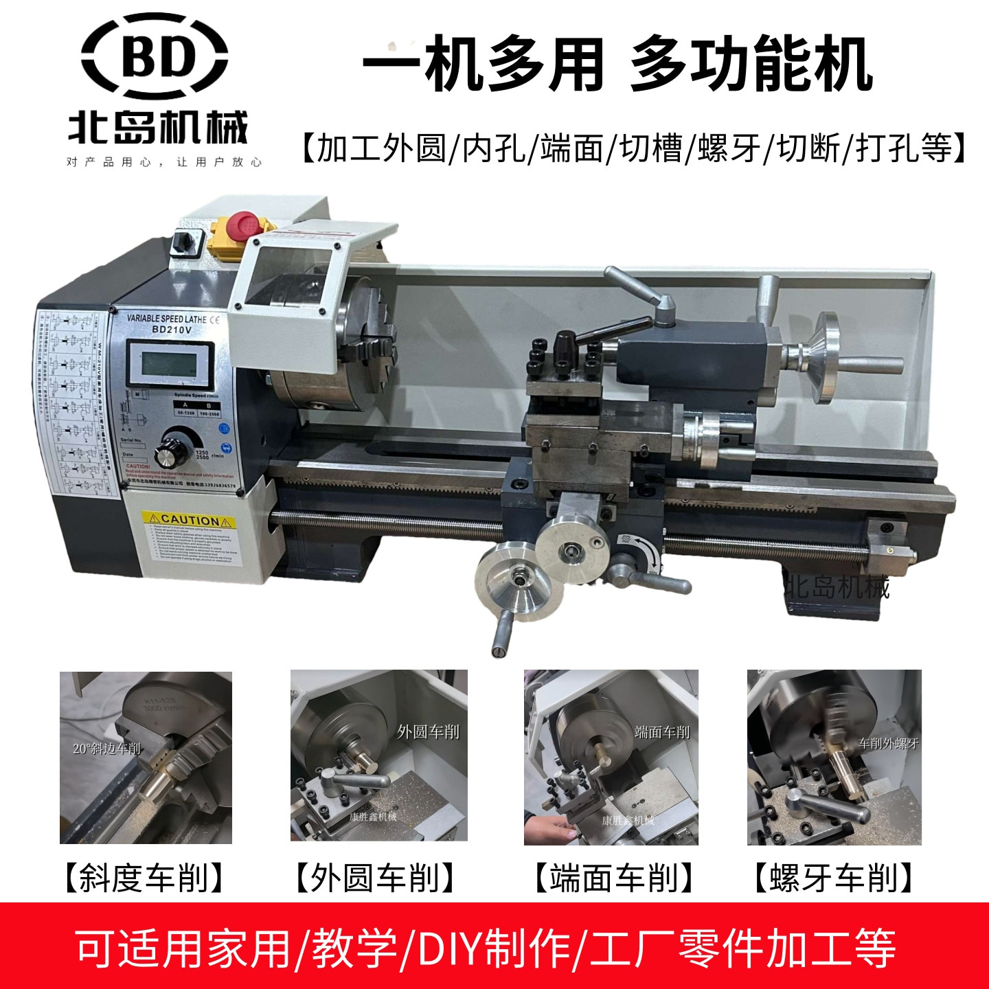 Мини-токарный станок Beidao WM210V, настольный токарный станок для самостоятельной сборки, многофункциональный токарный станок по металлу, учебный станок
