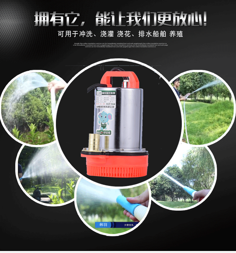 主要用于 可用于冲洗 灌溉 排水船舶,养殖等行业,电压为12V 24V 48V 60V 电压。此款水泵具有防高温 防漏电 防渗漏 等特点 采用宝塔式出水口,方便链接管子,