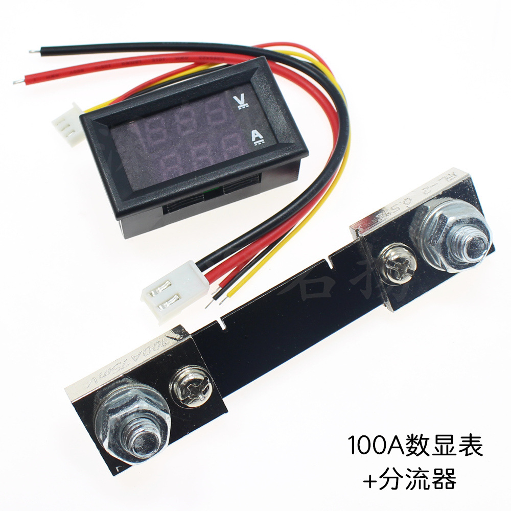 接上分流器,接细红线和细黑线到电源,量程为50A的表头电流显示0.00,量程为100A的表头显示0.0;