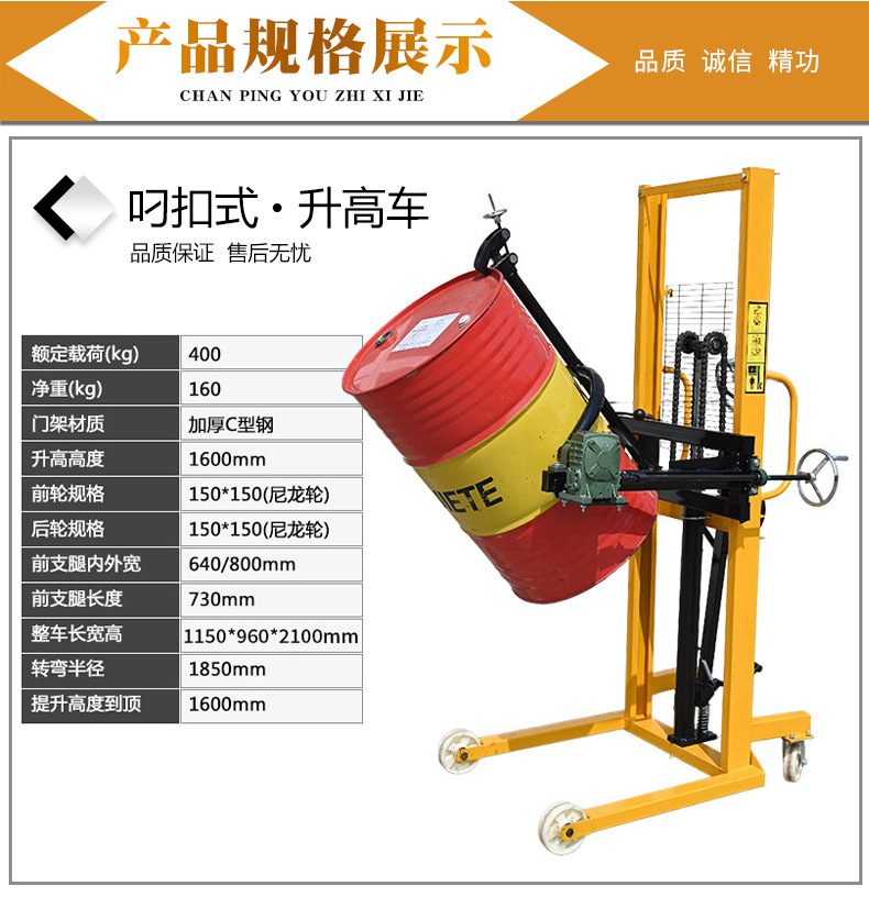 Железное ведро пластиковое ведро подъемник автомобиля 400A; Сцепление нефти баррель поднял намотки автомобиля 400B; Пряжка удерживающая обруч подъемный Самосвальный автомобиль 400С; Большие обруч подъема демпинг автомобиль 400D; Железный барабан пластиковое ведро 400А-1 (со шкалой); Пряжка самосвал 400B-1 (со шкалой); Пряжка-обруч 400C-1 (со шкалой); Обруч Фидер 400d-1 (со шкалой)