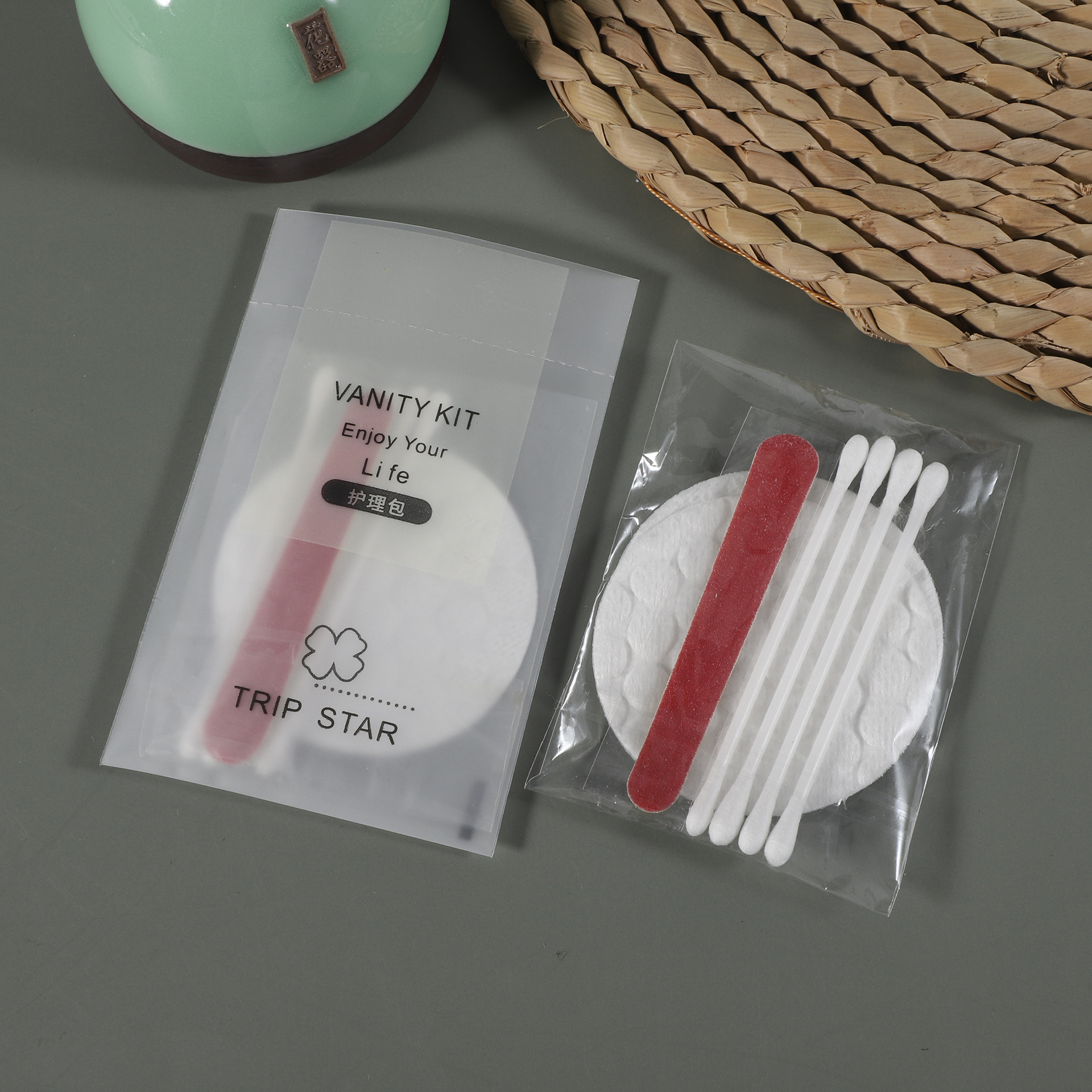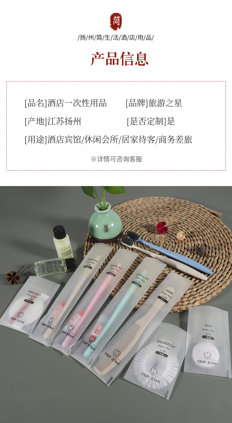 3 г зубной пасты (случайный цвет); Соломенный меч зубная щетка 3 г зубная паста (цвет случайный); Соломенная плоская рыба зубная щетка 3 г зубная паста (цвет случайный); Длинная соломенная расческа; Расческа из соломы банана (цвет пшеницы); Соломенный банановый гребень (соломенный синий); Шапочка для душа; Мыло (увлажняющее мыло); Сумка для рукоделия; 30 мл лавандовый шампунь; 30 мл геля для душа лаванды; 30 мл лосьон для тела лаванды; 30 мл лавандового кондиционера; Сумка для ухода