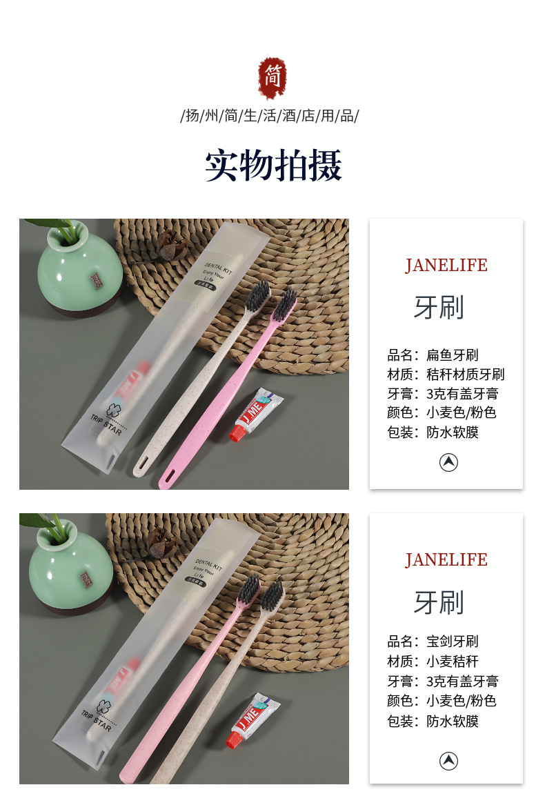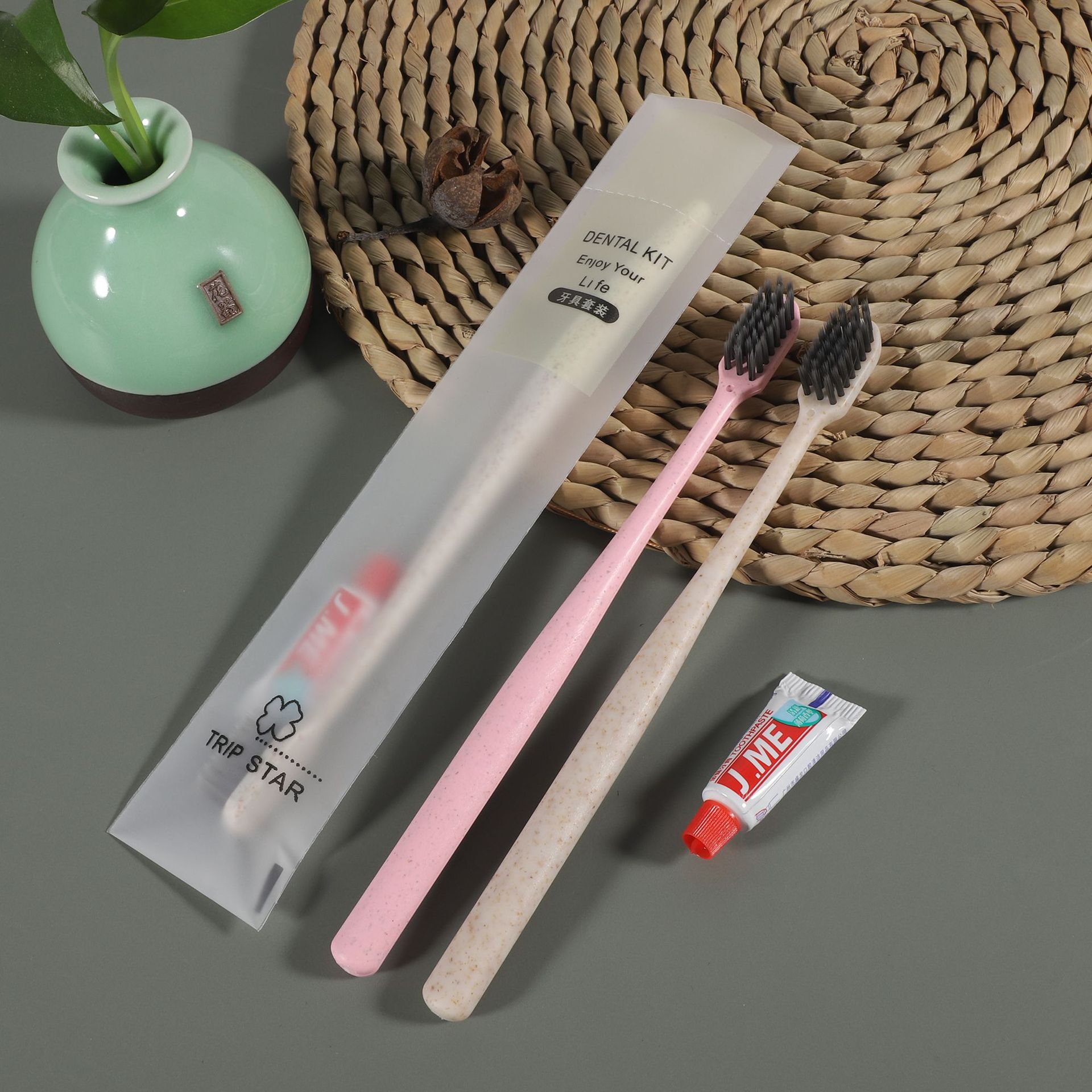 Оптовая Продажа с фабрики Отель одноразовая соломенная зубная щетка мягкая пленка Отель одноразовые туалетные принадлежности костюм