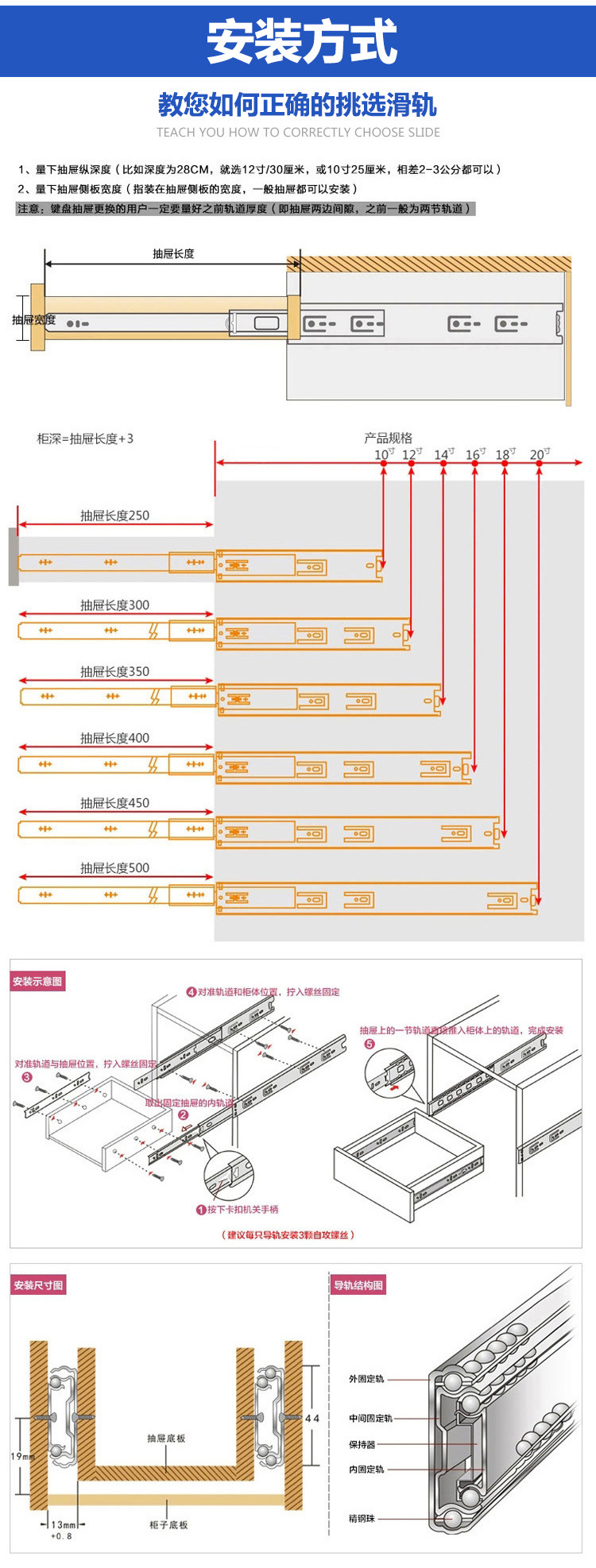 Заводская двукратная 17 широких Бесшумная направляющая демпфирующая буферная стальная шариковая направляющая небольшая двухсекционная направляющая для ящика
