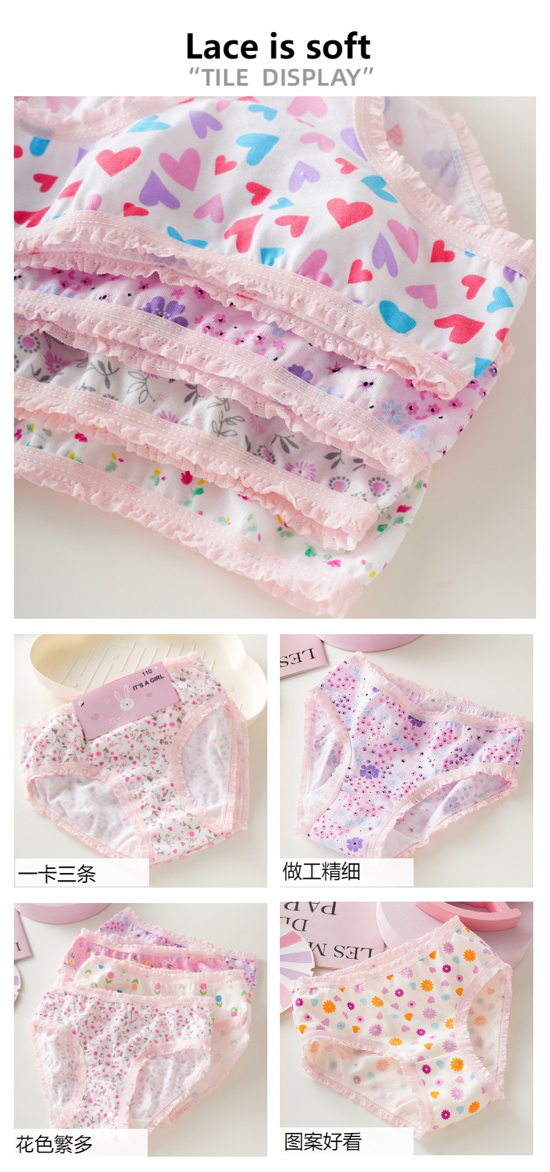 Фабрика прямых продаж детского нижнего белья Внешняя торговля хлопковые кружевные трусы Девушки Кружевное Нижнее белье треугольный хлопок трансграничный
