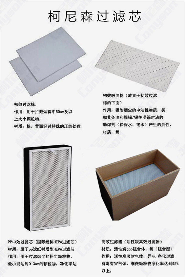 [柯尼森Conyson] C100/C200/CN300/CN301激光烟雾净化器是柯尼森团队专为激光烟雾处理而研发的一款烟雾净化设备,具有吸力强劲、低能耗、噪音低、洁净度高(可达到车间净化标准)、品质稳定等功能。