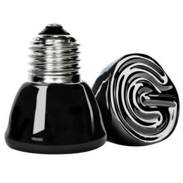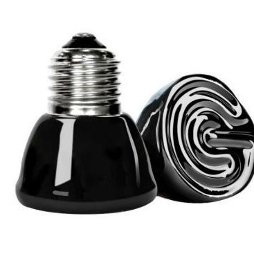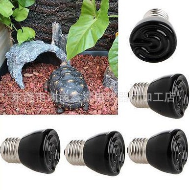 陶瓷加热灯加热的是整个龟箱的空气,比较均匀,有冷热区,当龟想在温度高的地方时可以爬得离灯近点,也可以去离灯远的地方"纳凉"。而且不必像使用加热垫一样担心龟的尿液把它浸湿,或者加热垫的线路什么的被龟啃坏。对龟来说使用起来安全系数比较高 功率有 25w50w75w100w