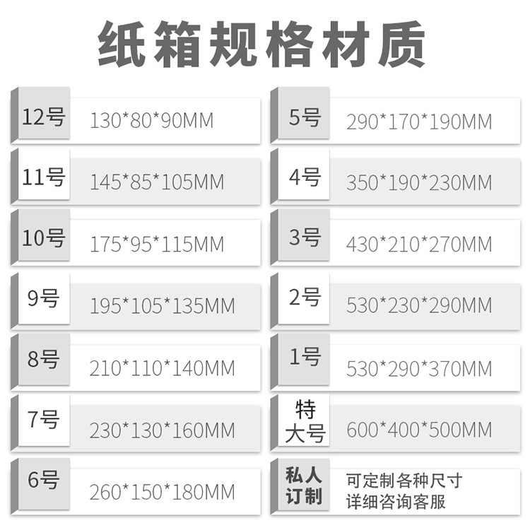 特大号,1号,2号纸箱需买满50元以上才能发货!否则低于50元不好打包,一律不发货!