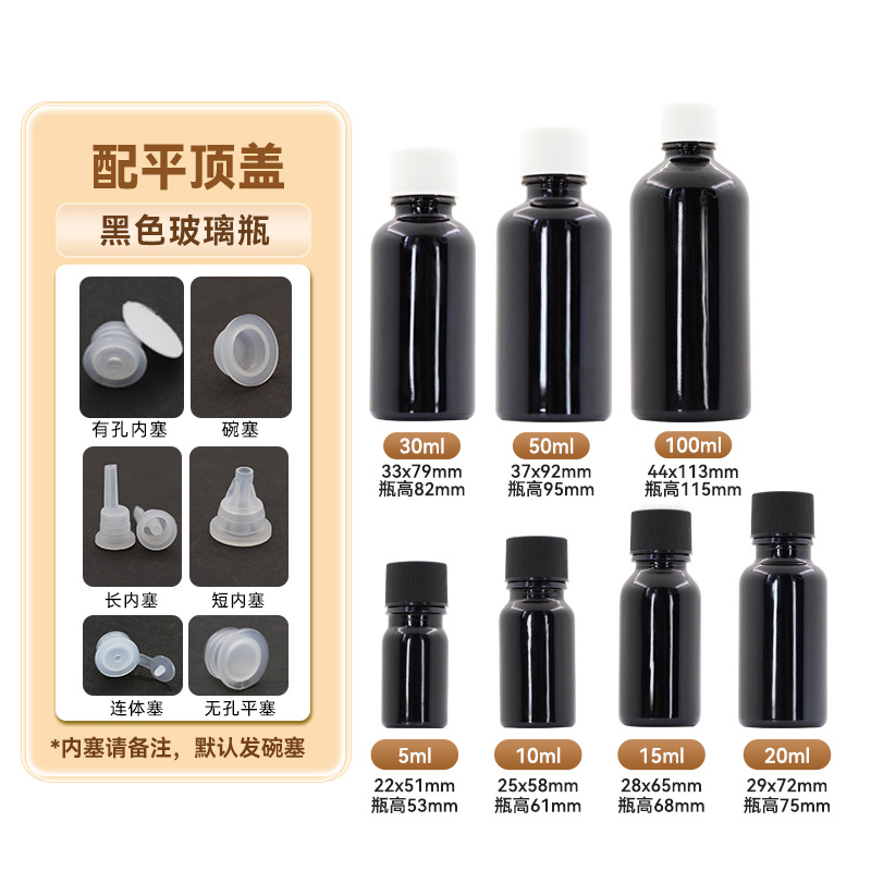 30ml черная крышка; 50ml Черная крышка; Черная крышка 100ml; 200ml черная крышка; 10ml Черная крышка; 15ml Черная крышка; 20ml черная крышка; 5ml бутылка черная крышка