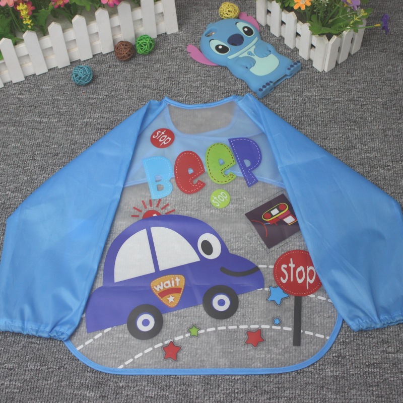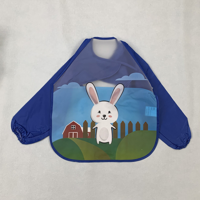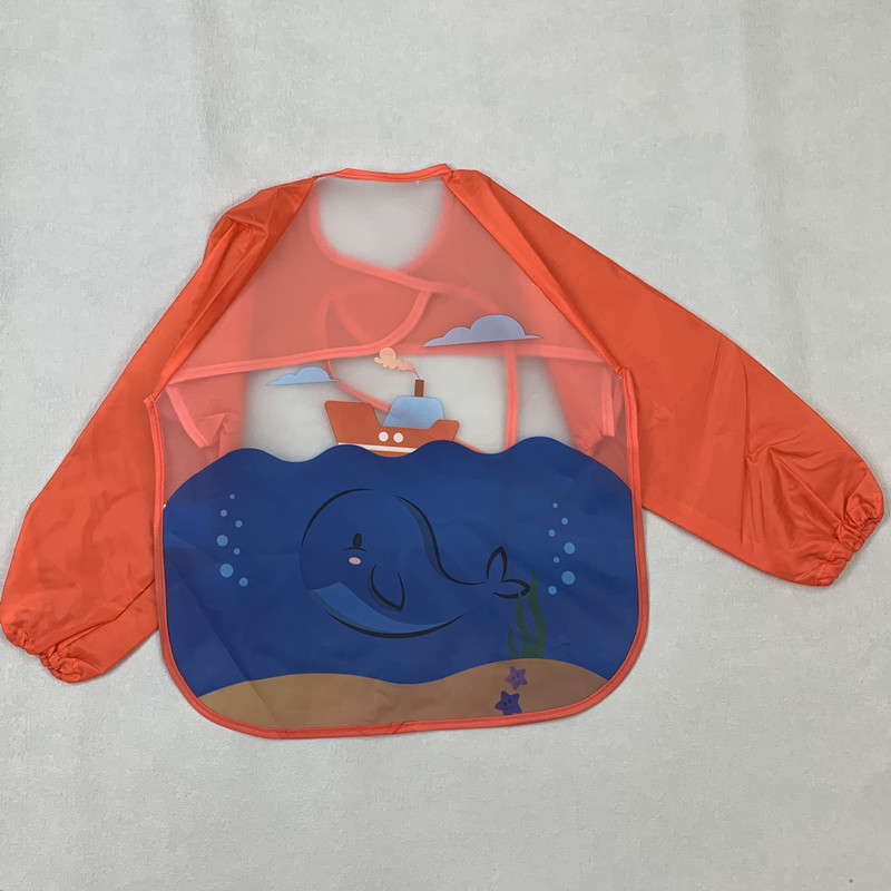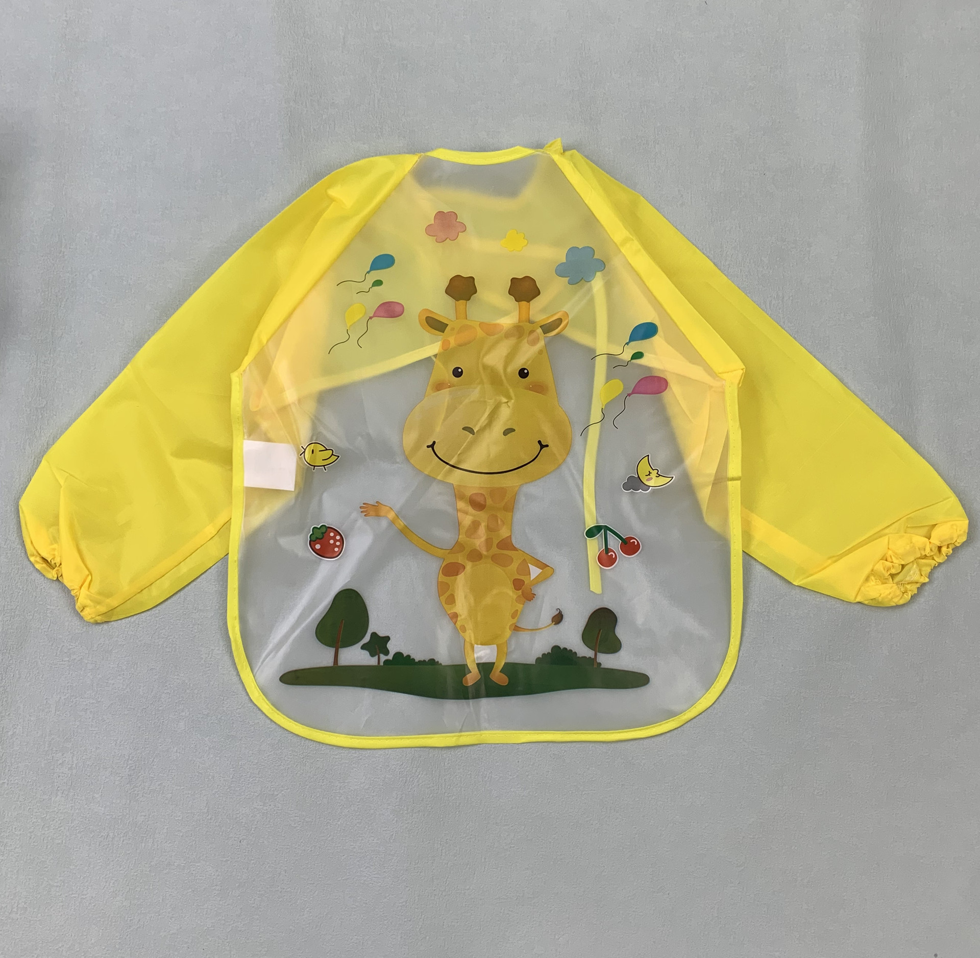 EVA透明吃饭衣,材质柔软舒适,透明的衣服还印有各种彩色的图案,既可爱又漂亮!