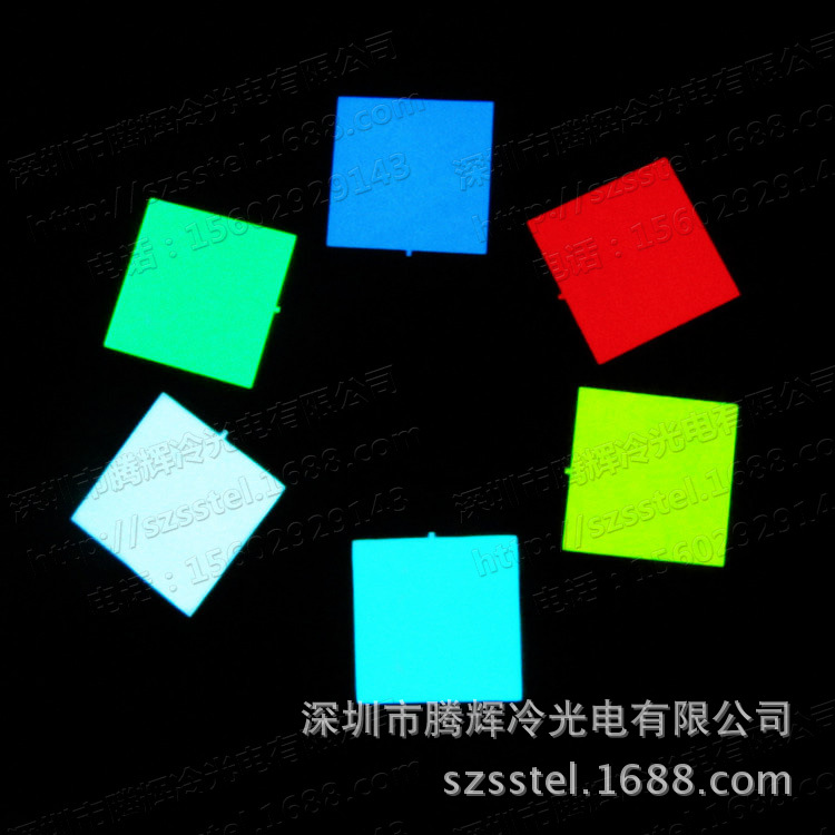 可应用在各种玩具发光源、电子礼品、夜光圣诞卡、圣诞树装饰、圣诞灯串、夜光手表、闪光手环带、各种卡通图标、胸牌、徽章、杯垫、茶杯、闪光宠物劲圈(牵带)、汽车内外部装饰,旅行帽、 T 血衫、背包、手袋等一系列产品之上。