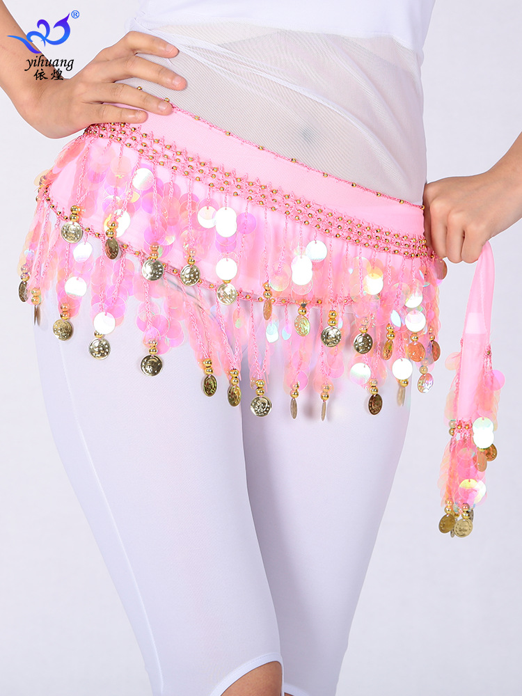 Цепочка на талию для восточных танцев, цепочка с пайетками и монетами для восточных танцев, платок на бедра, платок для квадратных танцев, платок для индийских танцев, платок для тренировок и выступлений