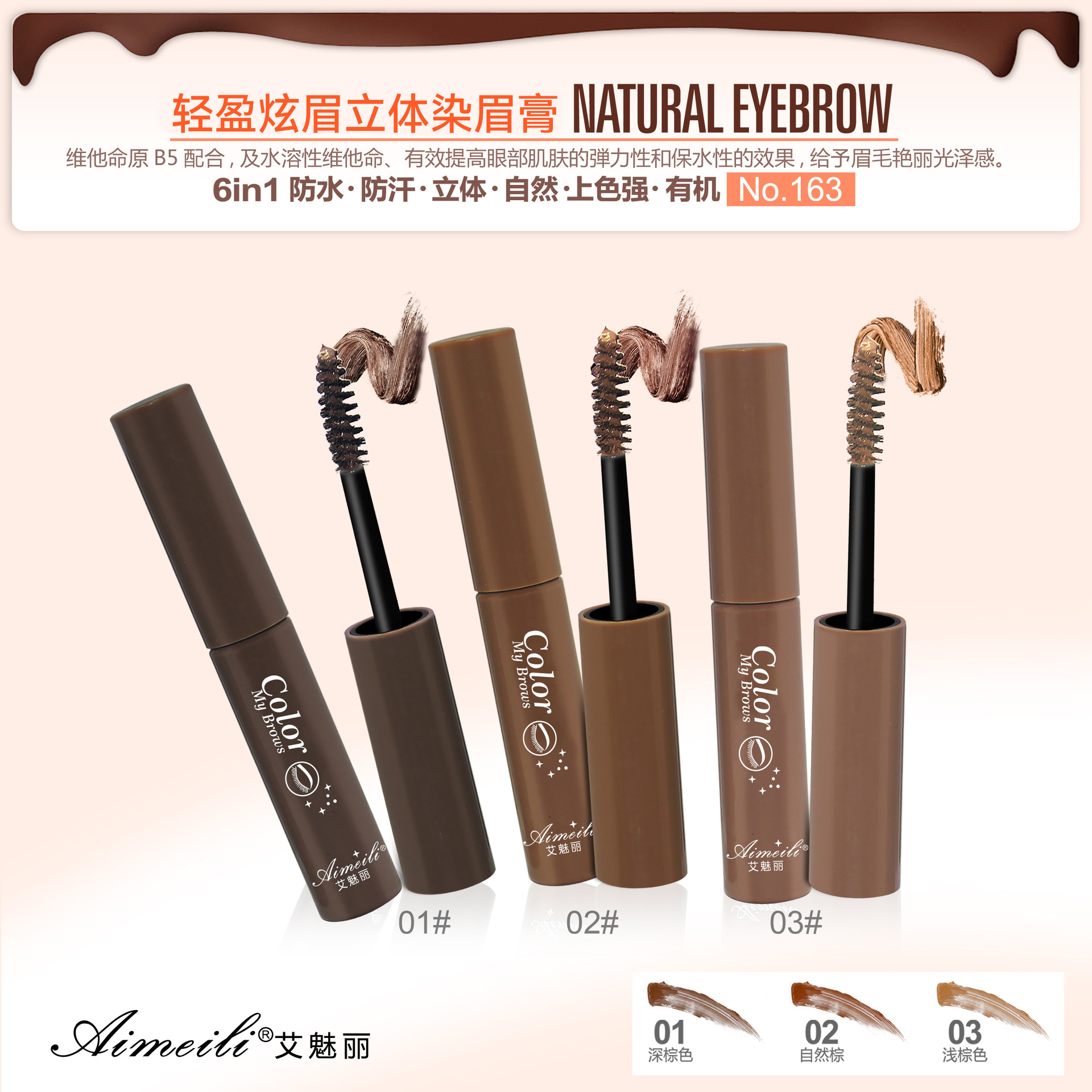 Novo Aimu Lili Горячая рекомендация 163 крем для бровей против пота, Стайлинг не снимает макияж, нелегко исчезнуть, производители Aili оптом