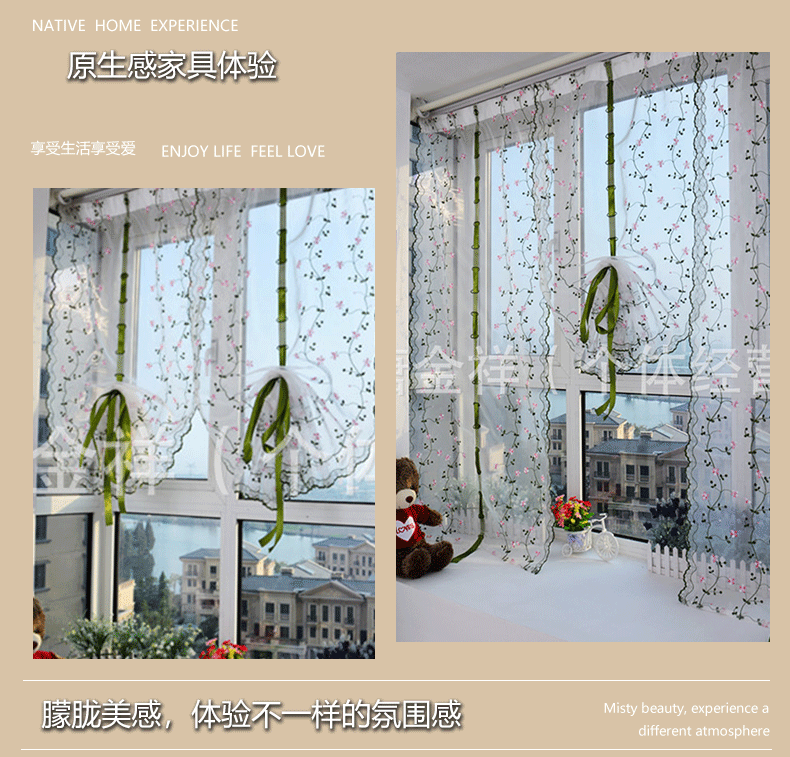 Не перфорированная свежая вышивка для спальни, маленькая регулируемая занавеска с цветочным принтом, римская занавеска, оптовая продажа, внешняя торговля, марлевая занавеска Shaoxing Keqiao