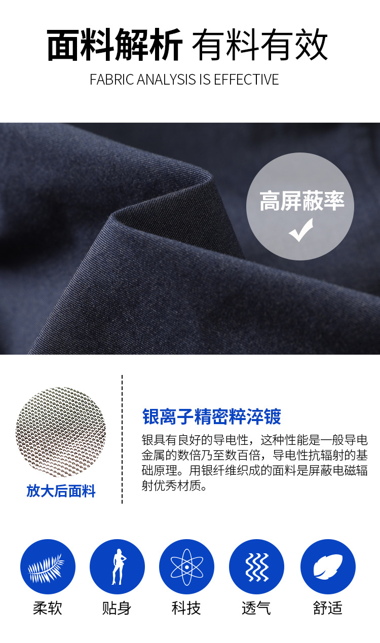 Однослойный: темно-синий (металлическое волокно), без поддельных брюк с карманами с клапаном.; Внешний слой темно-синий + внутренний слой фиолетовый (50% Jinlun) со серебряными брюками без поддельных карманов с клапаном.; Внешний слой темно-синий + внутренний слой серебристый (100% Jinlun), содержащий серебро, без поддельных брюк Flap Pocket.; Однослойный: темно-синий (металлическое волокно) с карманами из искусственного клапана.