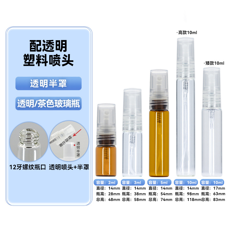 Прозрачная бутылка 5 мл.; Прозрачная бутылка 2 мл.; Прозрачная бутылка 10 мл.; Коричневая бутылка 2 мл.; Прозрачная бутылка объемом 3 мл.; 3 мл коричневая бутылка; Коричневая бутылка 5 мл.; Коричневая бутылка 10 мл.; Прозрачный стиль высотой 10 мл; Прозрачный короткий стиль 10 мл.; Прозрачный спрей на 12 зубов + половина крышки