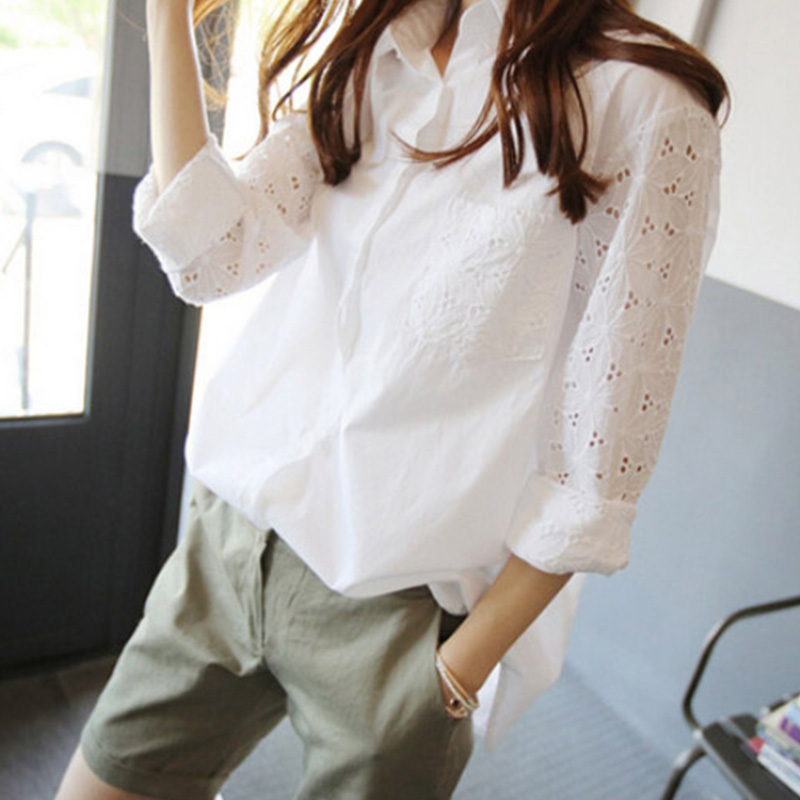 2023 Новое поступление Блузка с длинным рукавом открытая блузка свободная блузка больших размеров хлопковый топ хорошего качества