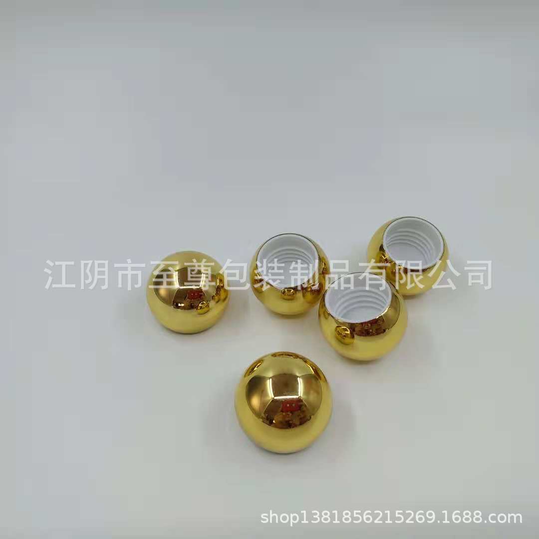 产品名称:20#球形电镀塑料盖、ABS塑料盖子、化妆品瓶盖、塑料瓶盖 产品特点:电镀/喷涂/烫金银边 |