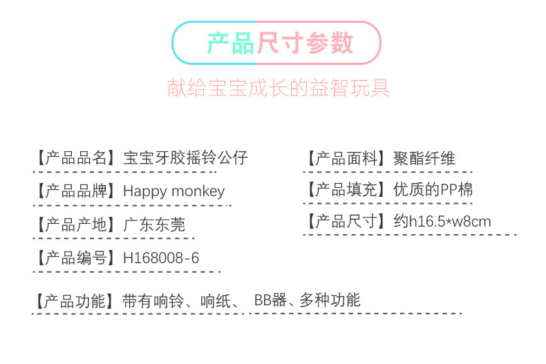 HAPPY MONKEY 品牌宝宝牙胶摇铃针对于婴幼儿的成长给予全方面的促进与提高.