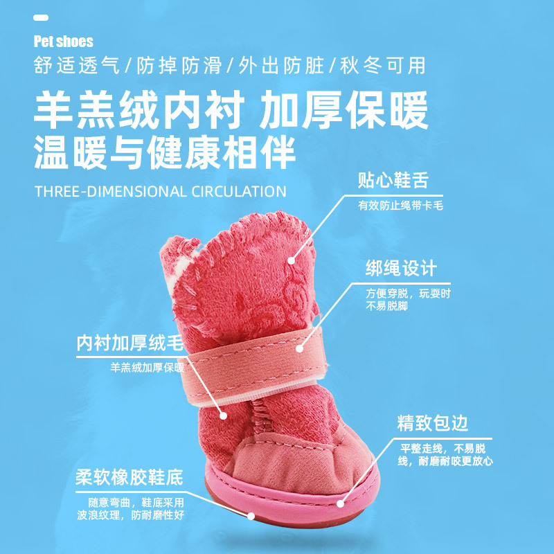 Обувь для домашних животных Зимние сапоги Обувь для кошек Обувь для собак Осень-зима Тедди Чихуахуа Ягненка Собака Хлопок Обувь Принадлежности