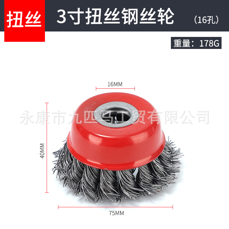 Девять лошадиных проволочных колес 3-дюймовая щетка для скручивания 4-дюймовая винтовая чаша для шлифования ржавчины и полировки шаров 4-дюймовые скрученные проволочные щетки типа проволоки