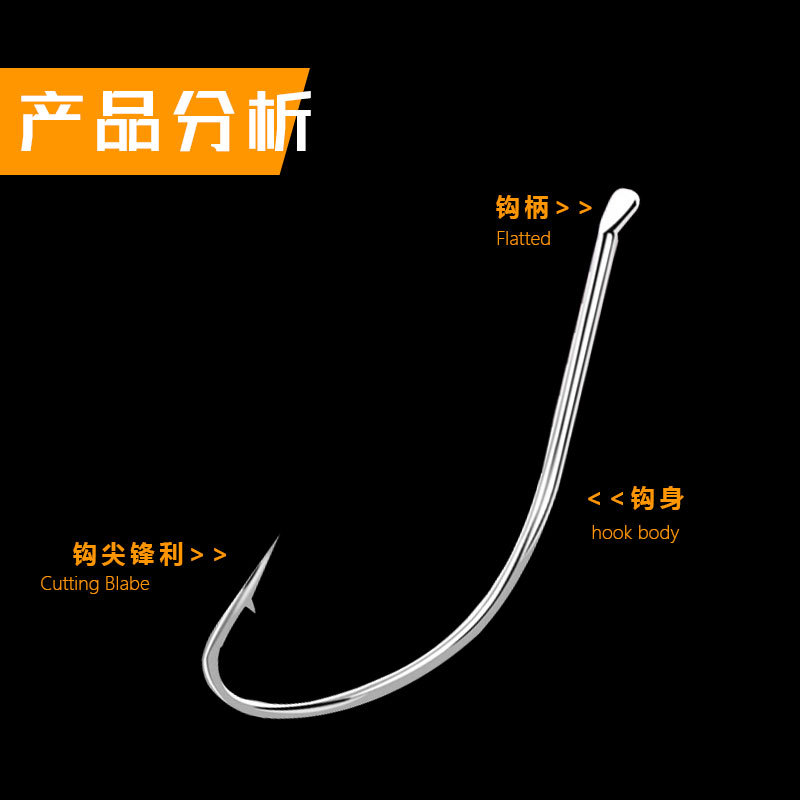袖:此钩型无倒刺。钩尖锋利,钩柄长,钩条细钩身轻,适用于吸入取食的小型鱼种,快钓快取,多用于钓白鲫、小白条等。