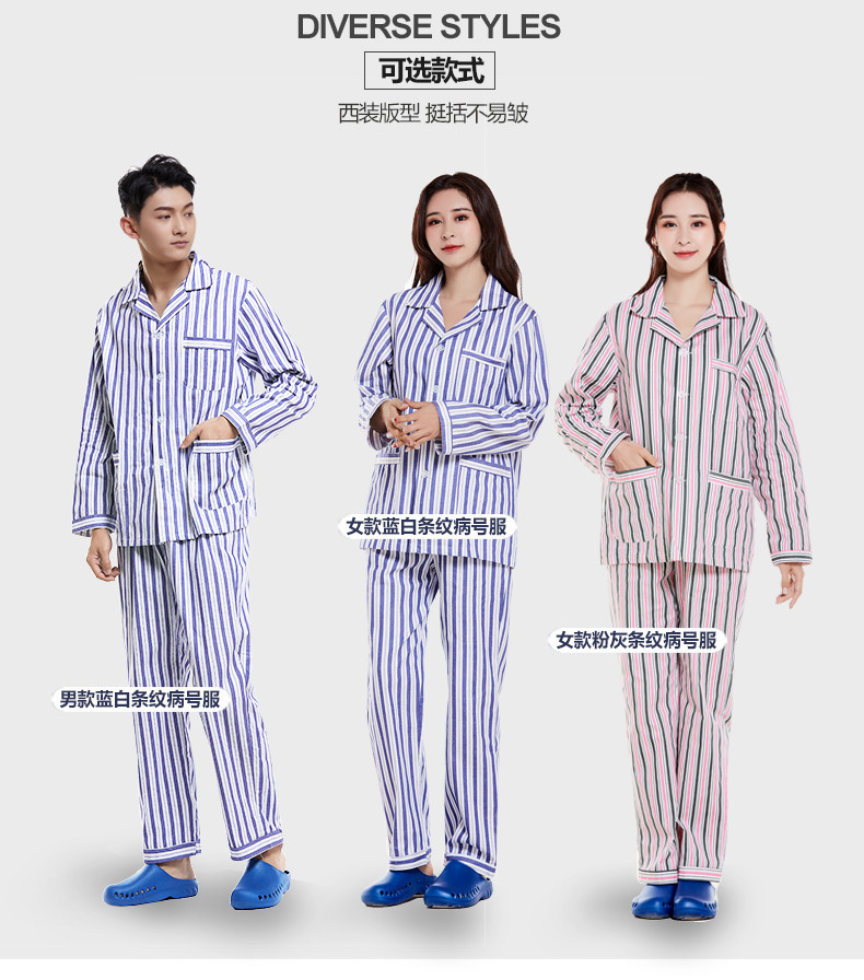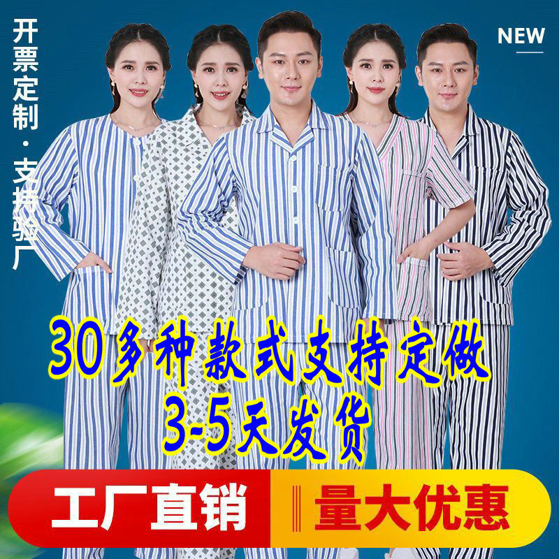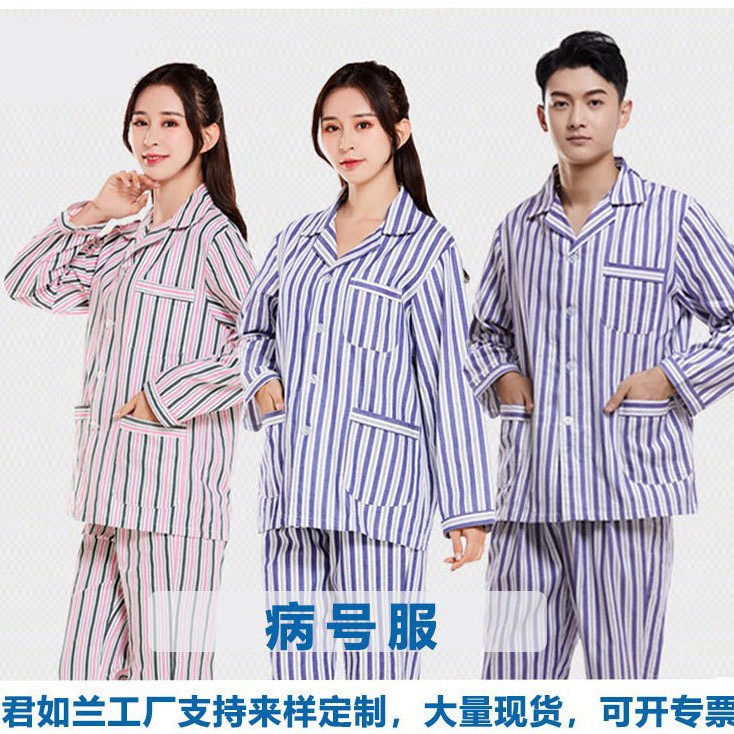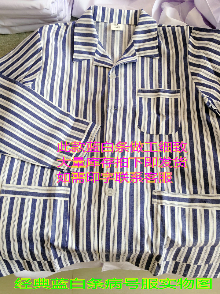 病号服蓝白条灰红条大量现货,价格最优,千种款式面料均可定制,请联系客服!欢迎自助下单,不满意可退货!