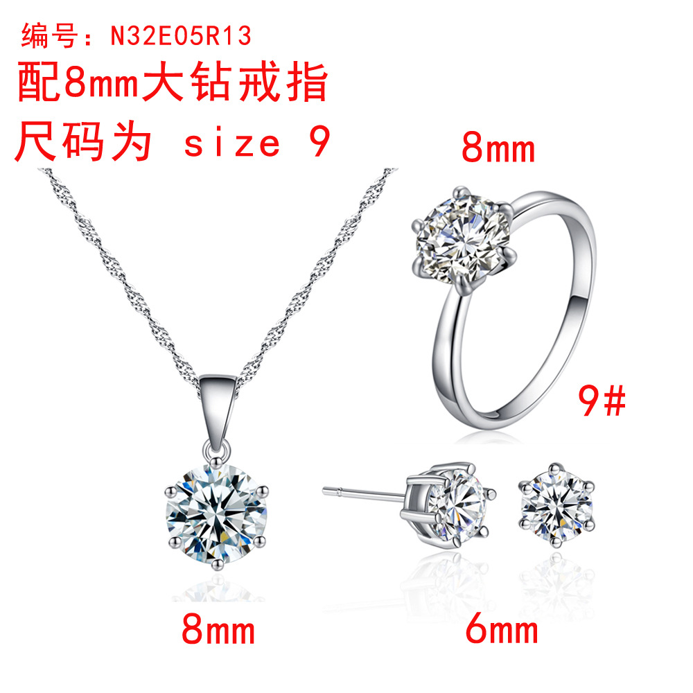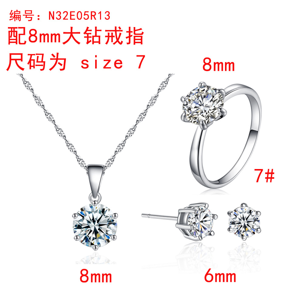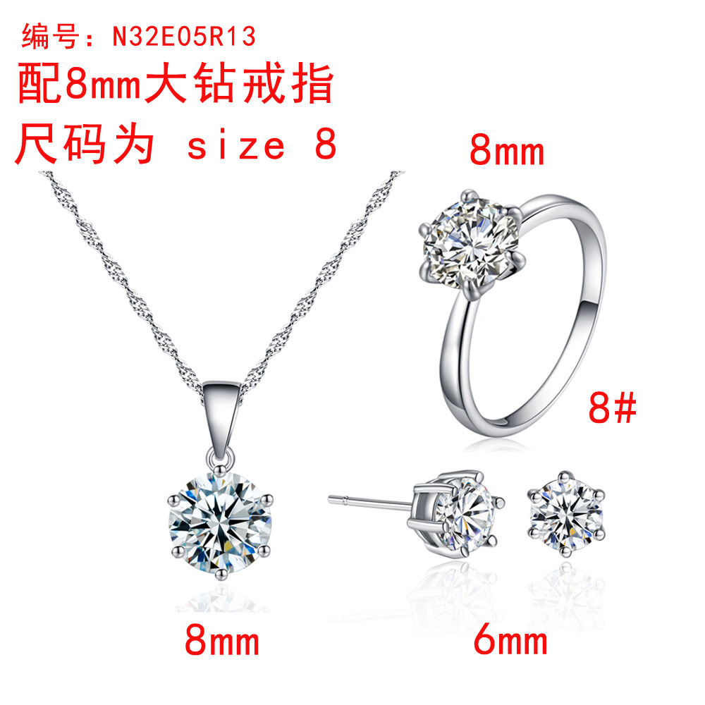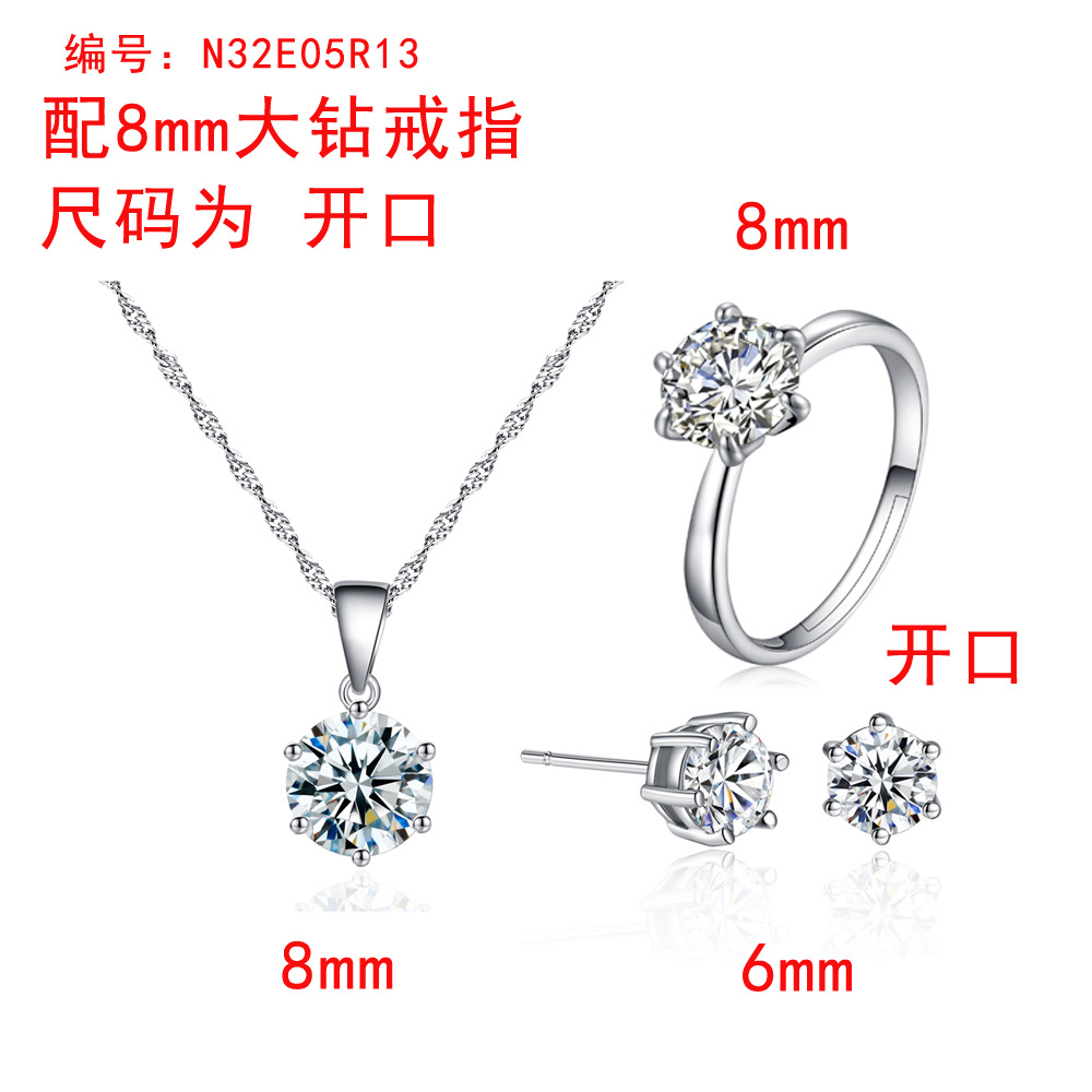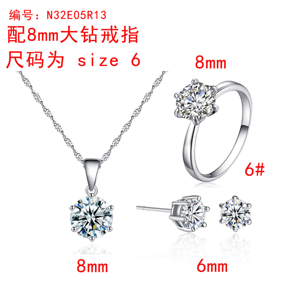 产品规格:项链8MM锆石 耳钉6MM锆石 戒指6mm / 8mm锆石