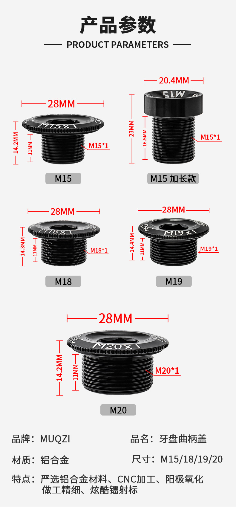 MUQZI Полый зуб диск кривошипная крышка винт горный мертвая муха шоссейный велосипед M15M18M19M20 алюминиевый сплав