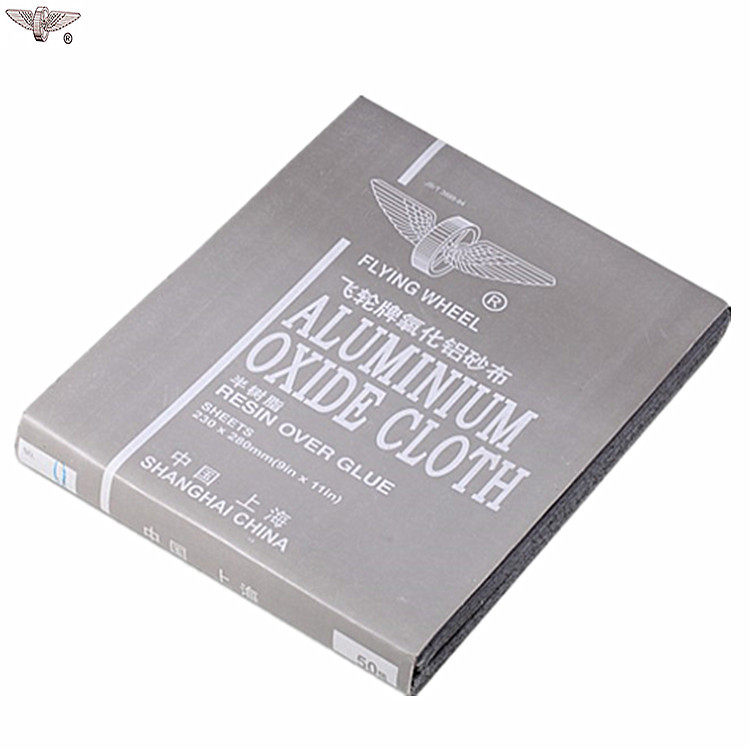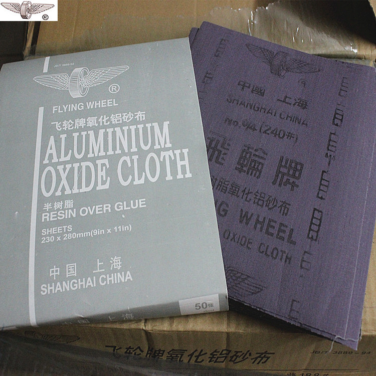 上海砂轮厂飞轮牌氧化铝半树脂砂布是一种改进型的干磨砂布。也叫氧化铝砂布,黑飞轮铁砂布,防潮金刚砂布。采用树脂为粘接剂。 主要用于金属,陶瓷,橡胶,木材,半导体,皮革和玻璃的打磨和抛光,该产品的特点是经久耐磨,加工质量好。