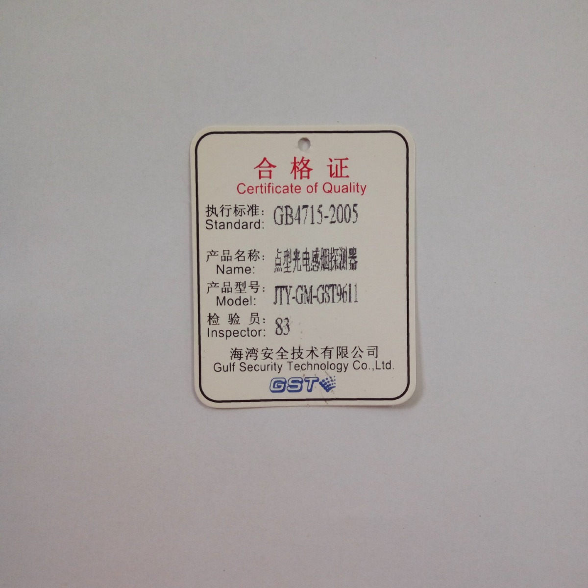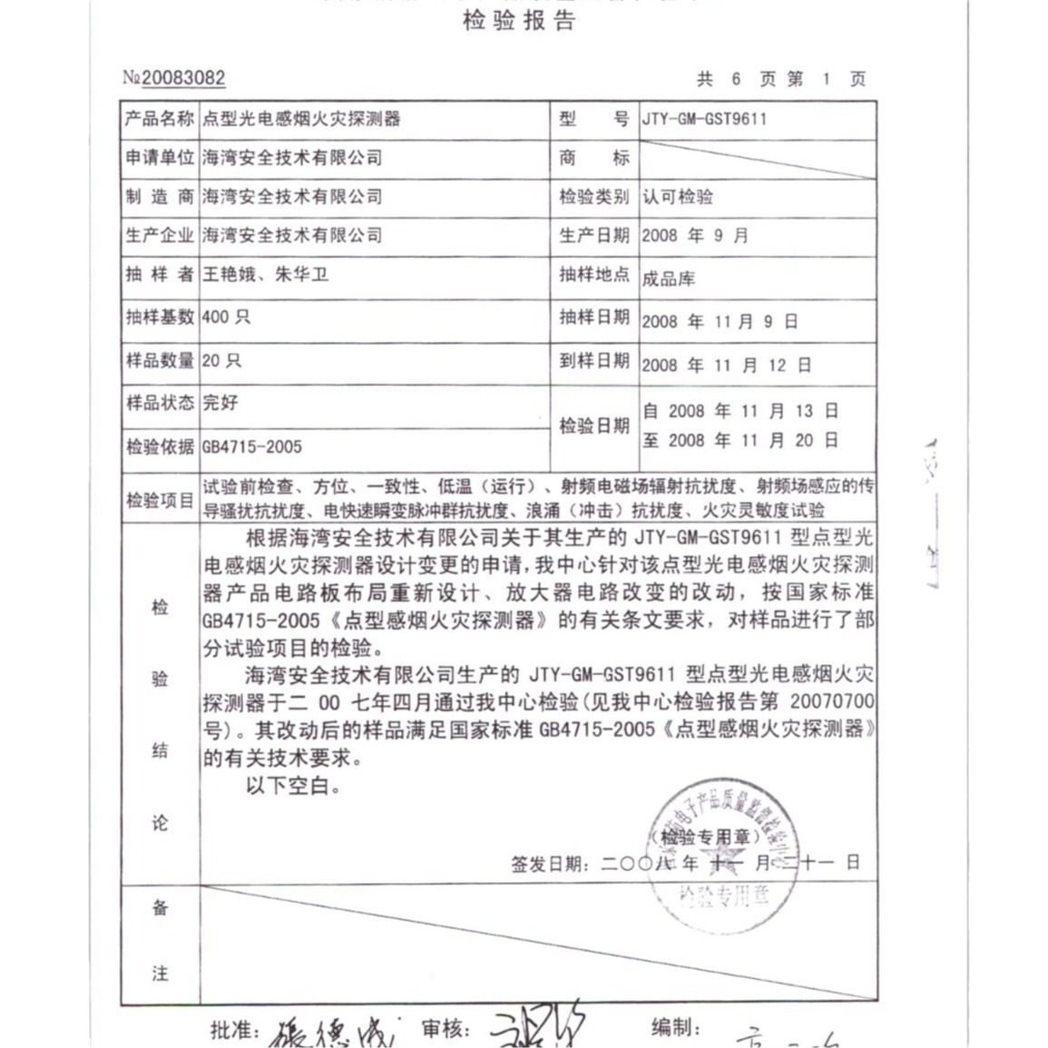 JTY-GM-GST9611型点型光电感烟火灾探测器符合国家标准GB 4715-2005《点型感烟火灾探测器》。
