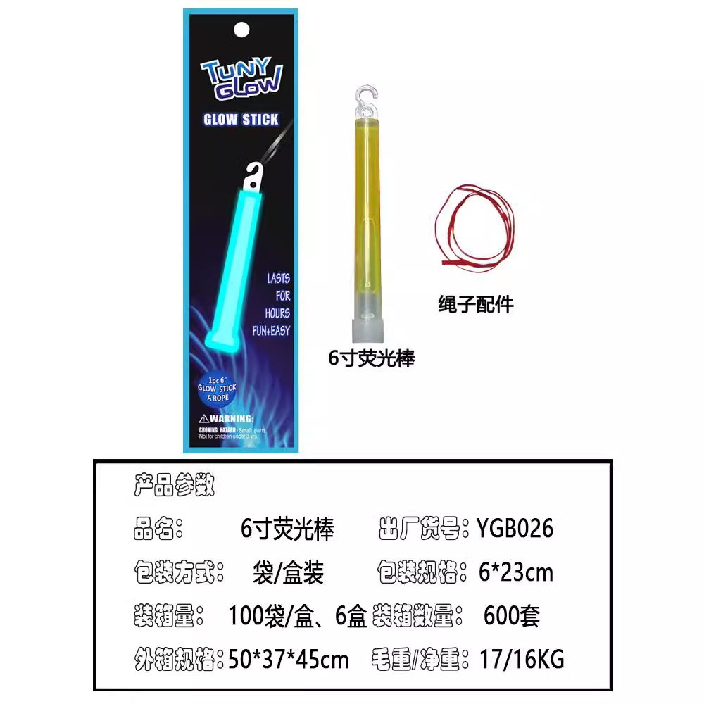 Фабричная Прямая Оптовая тонкая упаковка 6 дюймов с крючком светящаяся палочка 15*150 мм светящаяся палочка