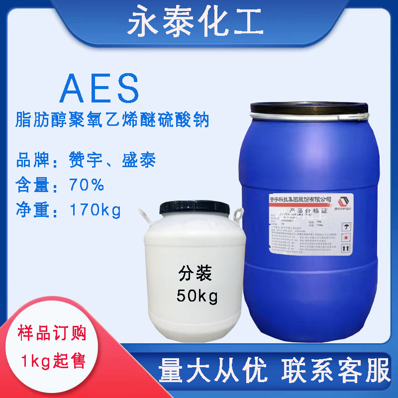 性能:阴离子表面活性剂,易溶于水,具有优良的去污、乳化、发泡性能和抗硬水性能,使用时请注意:在不含粘度调节剂的情况下,如果要把AES稀释为含有30%或60%活性物质的水溶液,常会导致一种粘性高的凝胶。为避免这一现象,正确的方法是将高活性产品加到规定数量的水中去,同时加以搅拌。而不要将水加到高活性原料,否则便可能导致凝胶的形成。