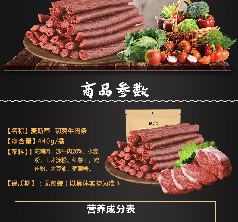 Поддержка одного поколения собачьих закусок для домашних животных Закуски для домашних животных 440 г полоски говядины для собак Максти