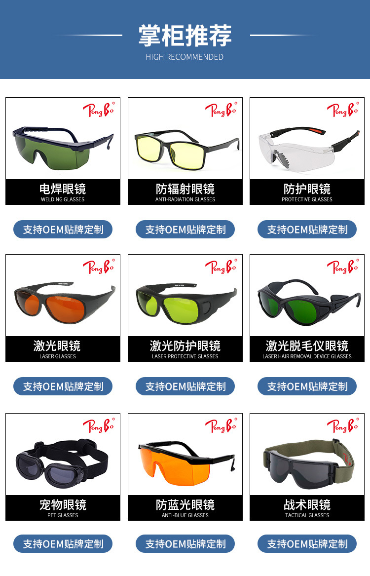 彭博供应低视力滤光镜 全包围防漏光镜架低视力防护眼镜定制加工