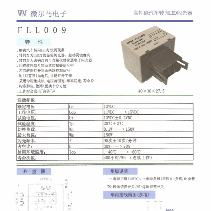 .转向灯为LED灯的必需闪光器,起动灵敏度高