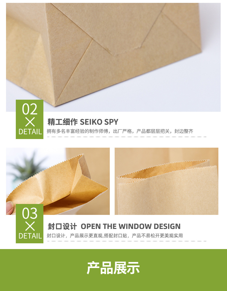 Спотовые бумажные пакеты для хранения крафт-бумаги с квадратным дном анти-масло и утолщение для выпечки на вынос сумки для пищевых пакетов