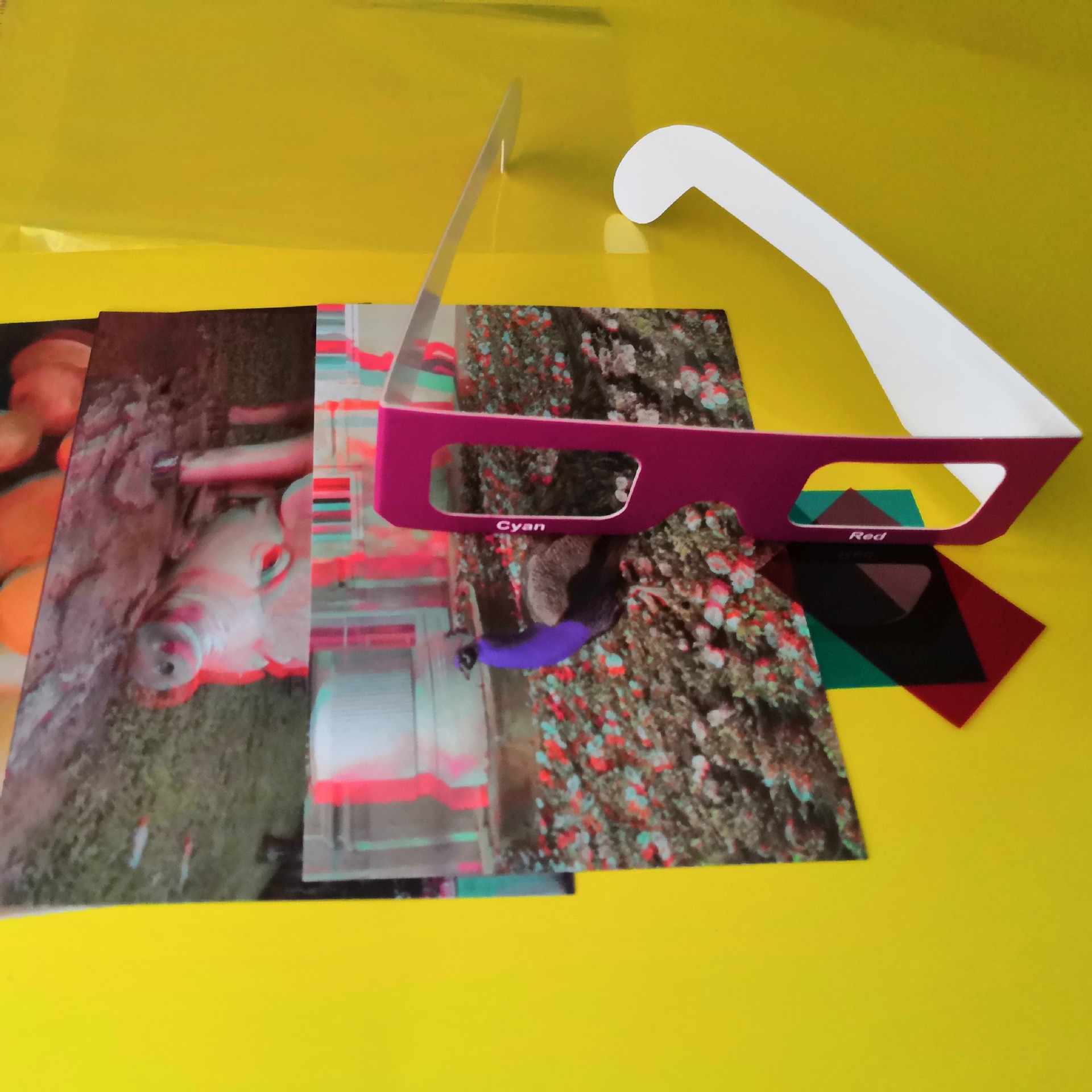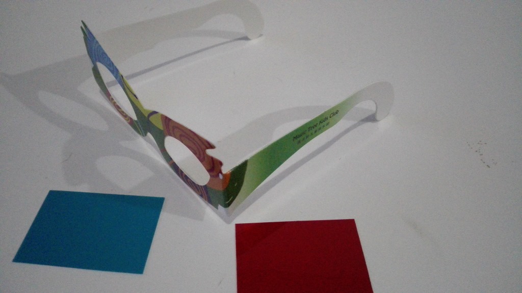 В наличии оптом и в розницу: детские 3D-очки для творчества (красные и синие), развивающие товары, белая оправа и фиолетовые линзы.