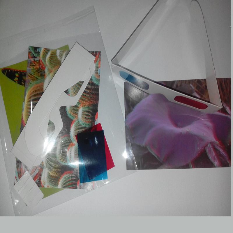 镜片为环保7.5丝镜片,超薄镜片,柔软不割手,款式有紫色和成品白色镜框,为DIY组装配件,红青镜片,双面胶,其中白色眼镜框,上面可以作画,自已动手又动脑,娱乐教育