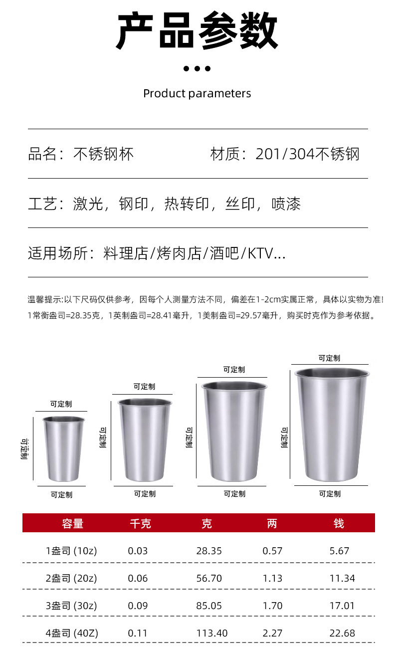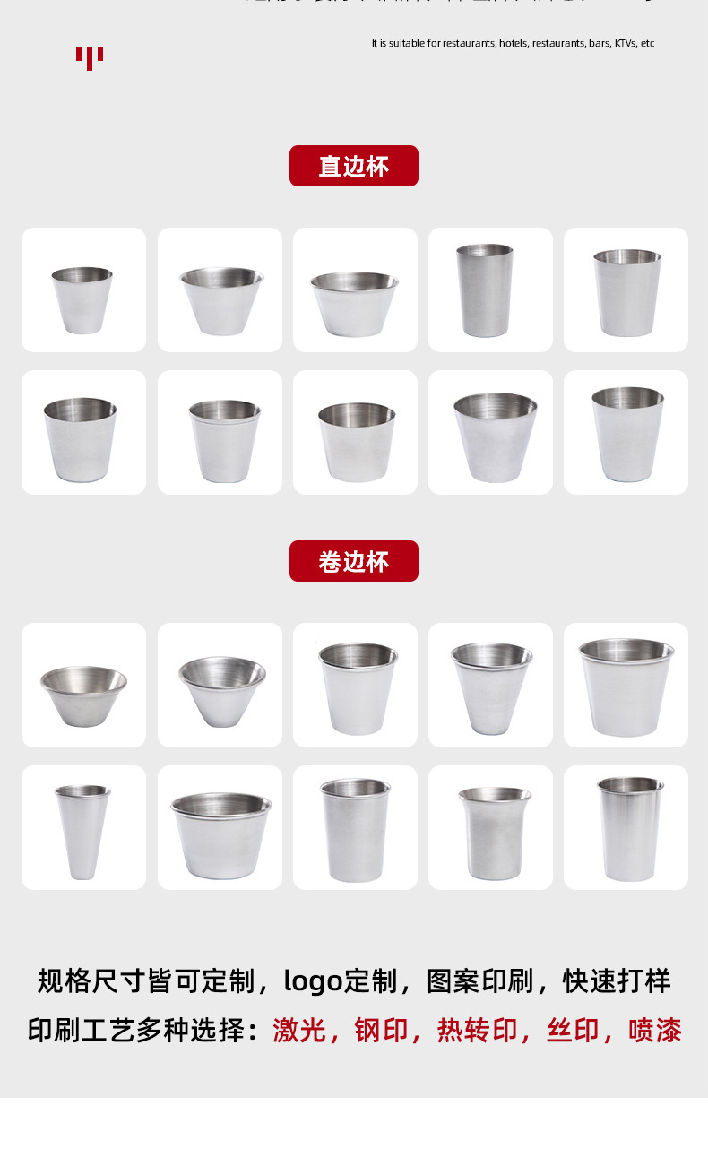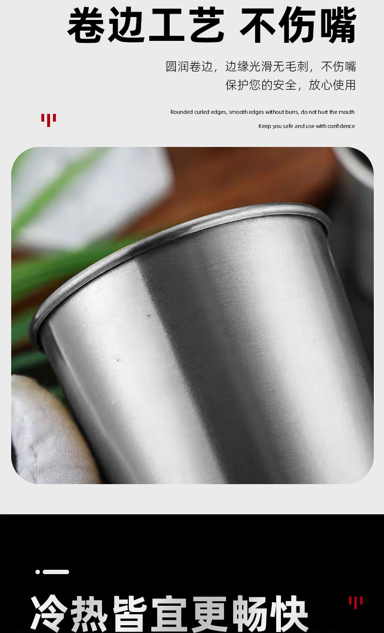 Трансграничная пивная чашка из нержавеющей стали с закругленным краем, винная чашка, высококачественная чашка для воды, чашка для спиртных напитков, чашка для приправ, оптовая продажа с напечатанным логотипом