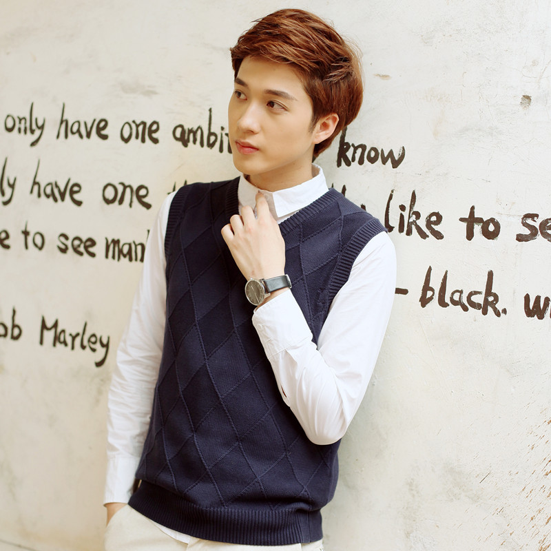 Мужской приталенный шерстяной жилет Fan Zhuos с V-образным вырезом, однотонный вязаный шерстяной жилет, мужской свитер без рукавов, жилет, мужской