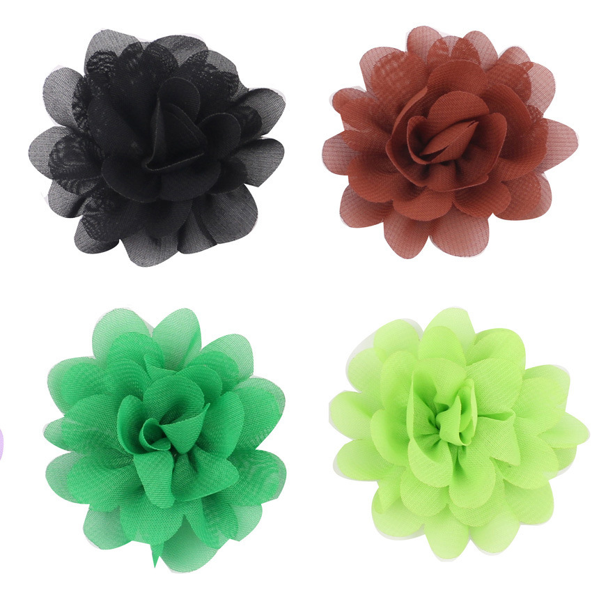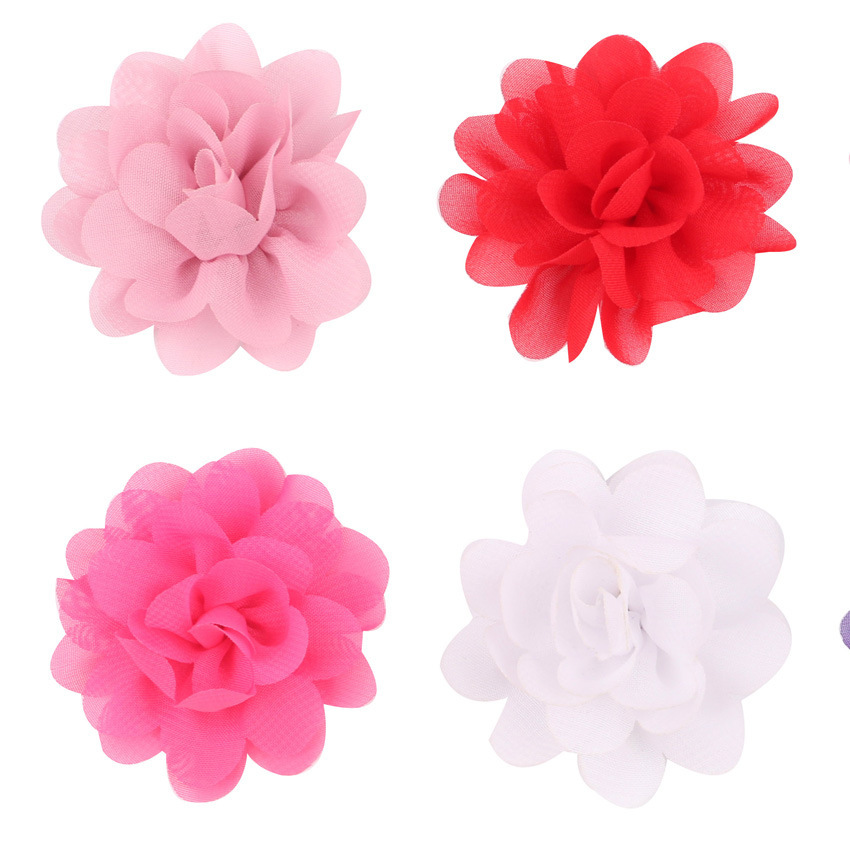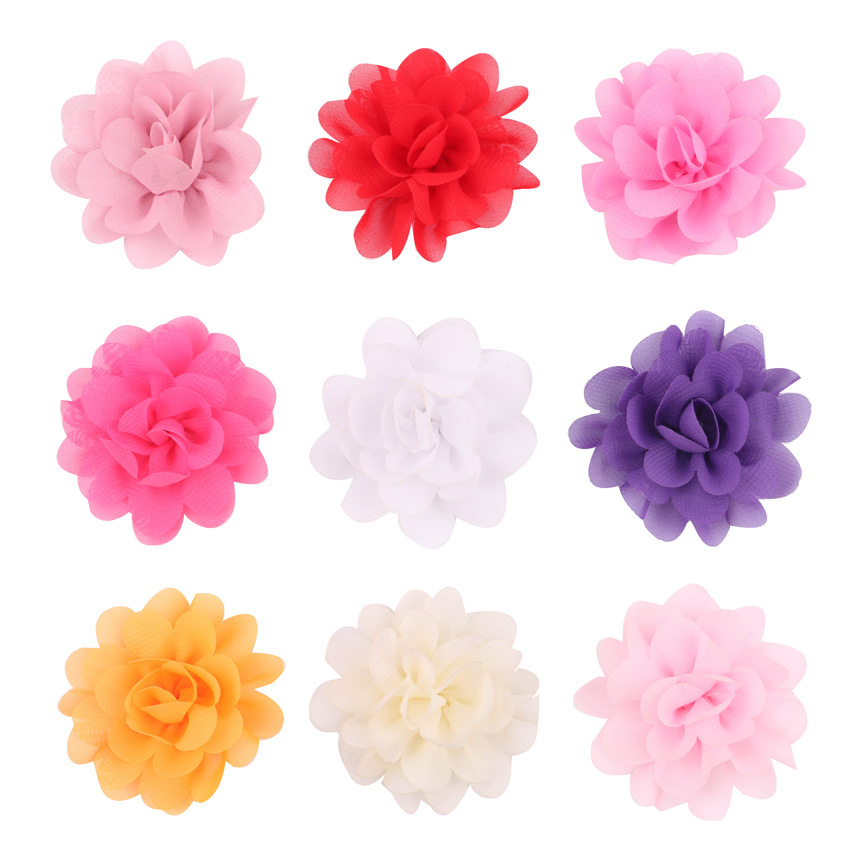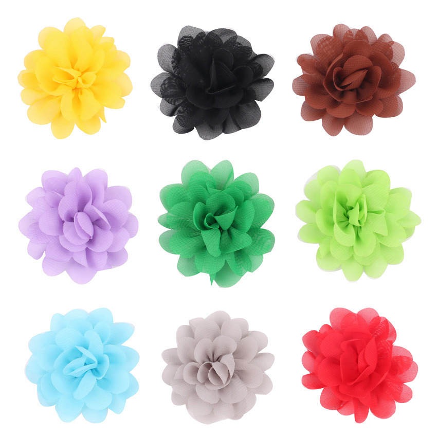 Цветы из шифона 5 см для детской одежды, аксессуары для волос без заколок, цветочные украшения для девочек, оптом, 40 цветов в наличии