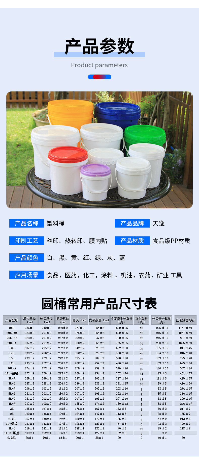 塑料包装桶、工业用塑料桶、密封塑料桶、18L、20L、17L、15L、12升、25L、10L、8L、5L、4L、3L、2L、1L、0.35升、350ml桶、食品塑料桶、PP塑料桶、油漆桶空桶、塑料筒、白色塑料桶、长方形塑料桶、机油桶空桶、塑料桶加盖加厚、塑料桶方形 食品桶 油墨罐 洗涤剂 洗衣凝珠 洗衣粉 墨水桶 金属粉末包装桶 硅胶液桶 机油桶 润滑油桶 火锅底料包装桶 坚果果酱包装桶 酸菜桶
