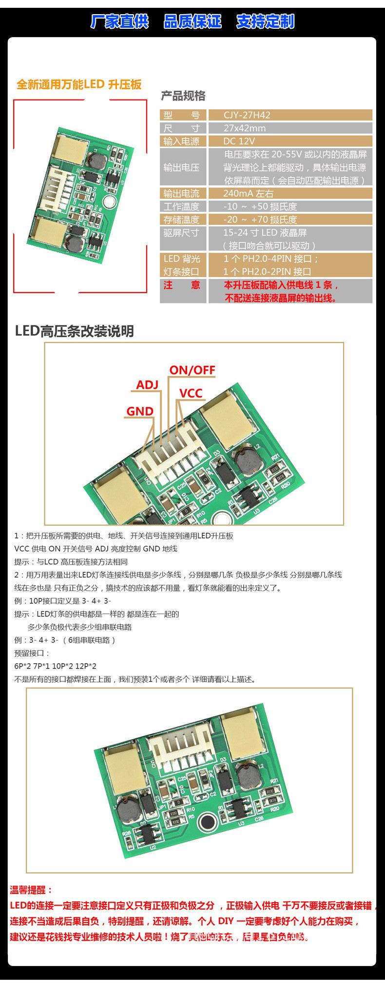 Светодиодная понижающая плата ЖК-дисплей Плата постоянного тока 27H42 Модуль драйвера ЖК-подсветки Импульсный источник питания Интегрированная двухпортовая плата постоянного тока