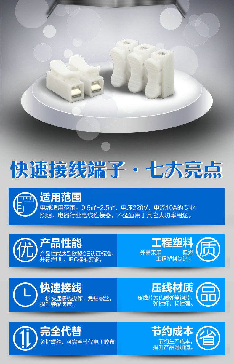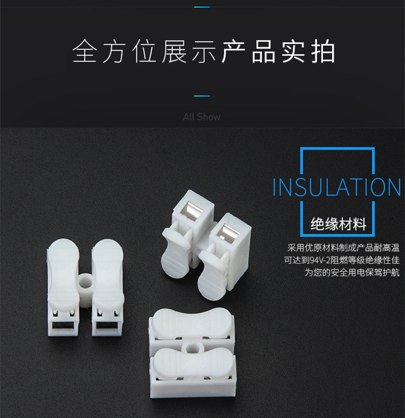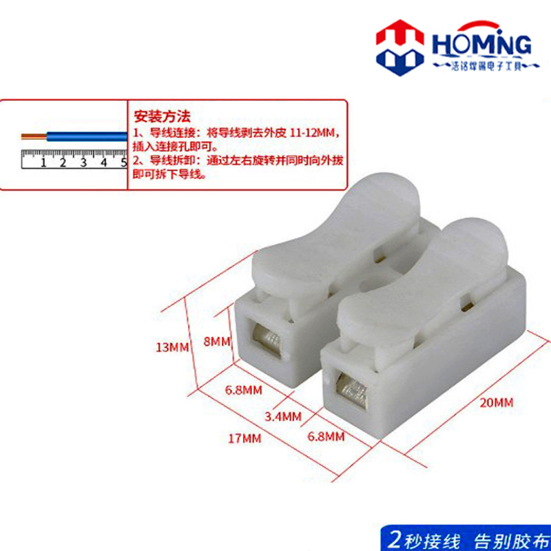Закрытый клеммный разъем CH2 для быстрого подключения, электрический клеммный терминал для светильников, двухпозиционный пружинный клеммный соединитель с нажимным механизмом.