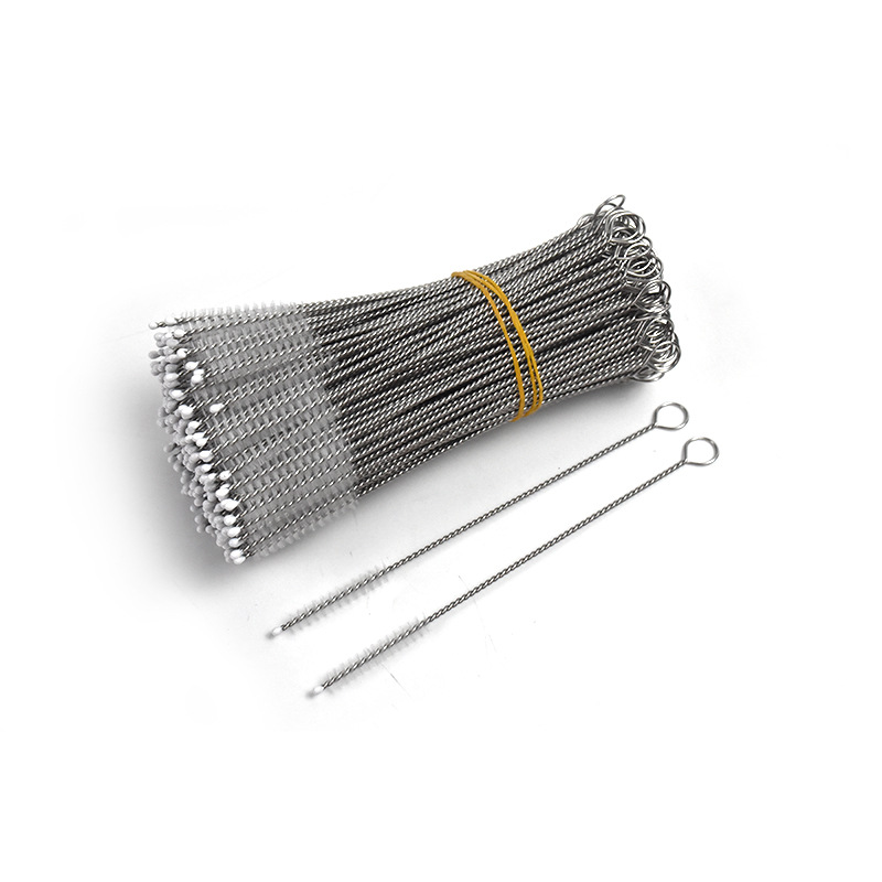 Прямая продажа щетки из нержавеющей стали с нейлоновой щетиной для чистки детских бутылочек, чашек, трубочек, трубок и пробирок.